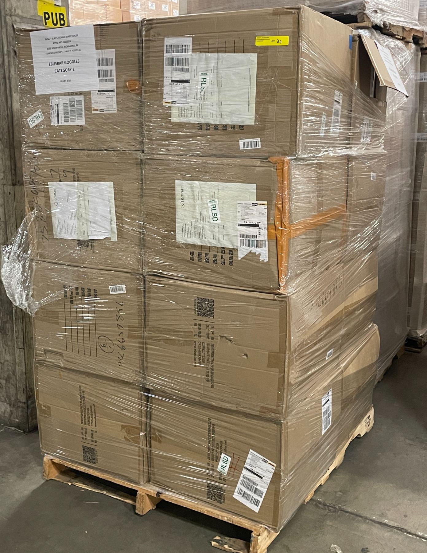 Pallet of Ebusbar anit-impact goggles (2 in a box - approx. 50 per box = 100 total | approx. 15 boxes in pallet)