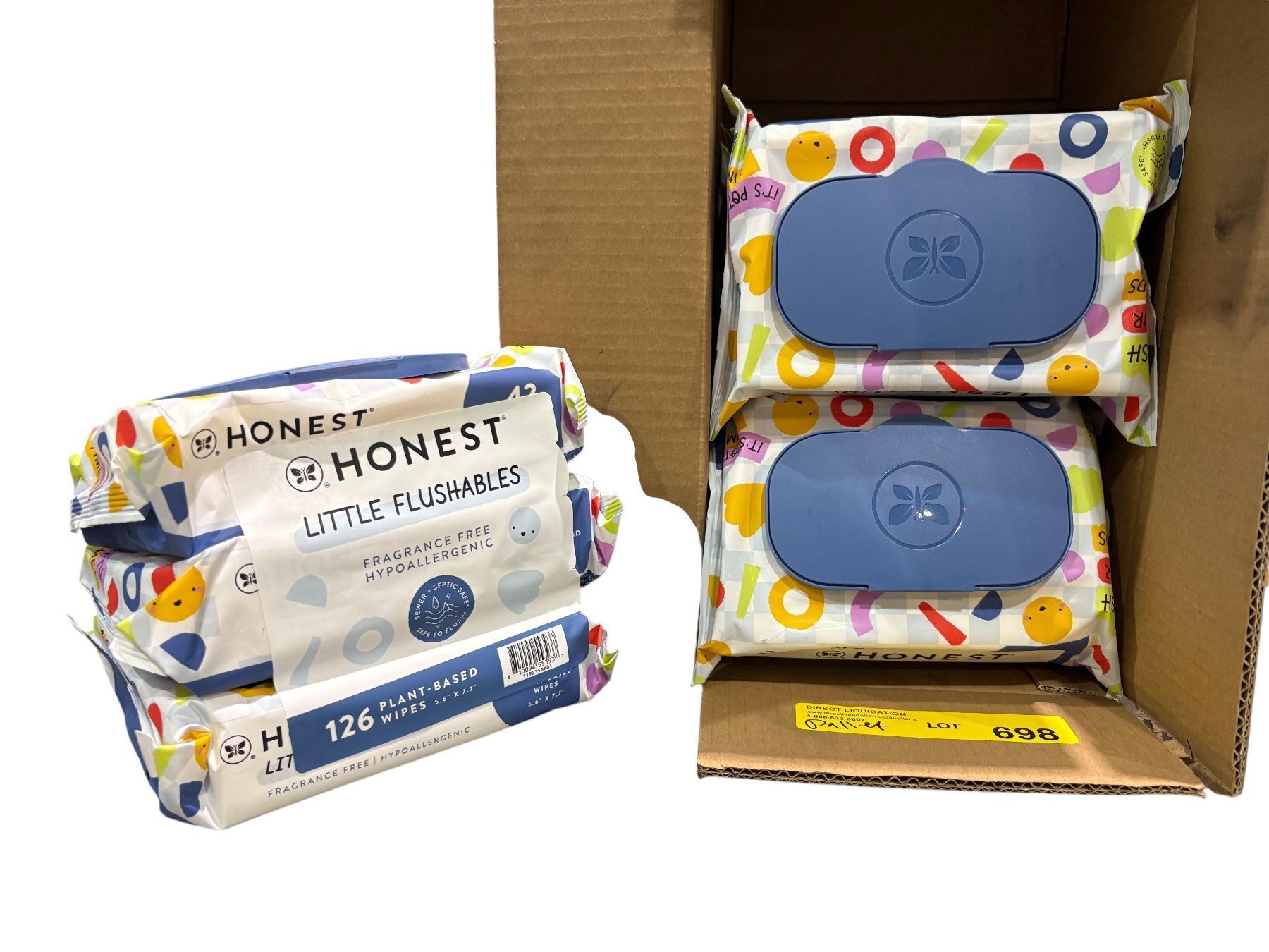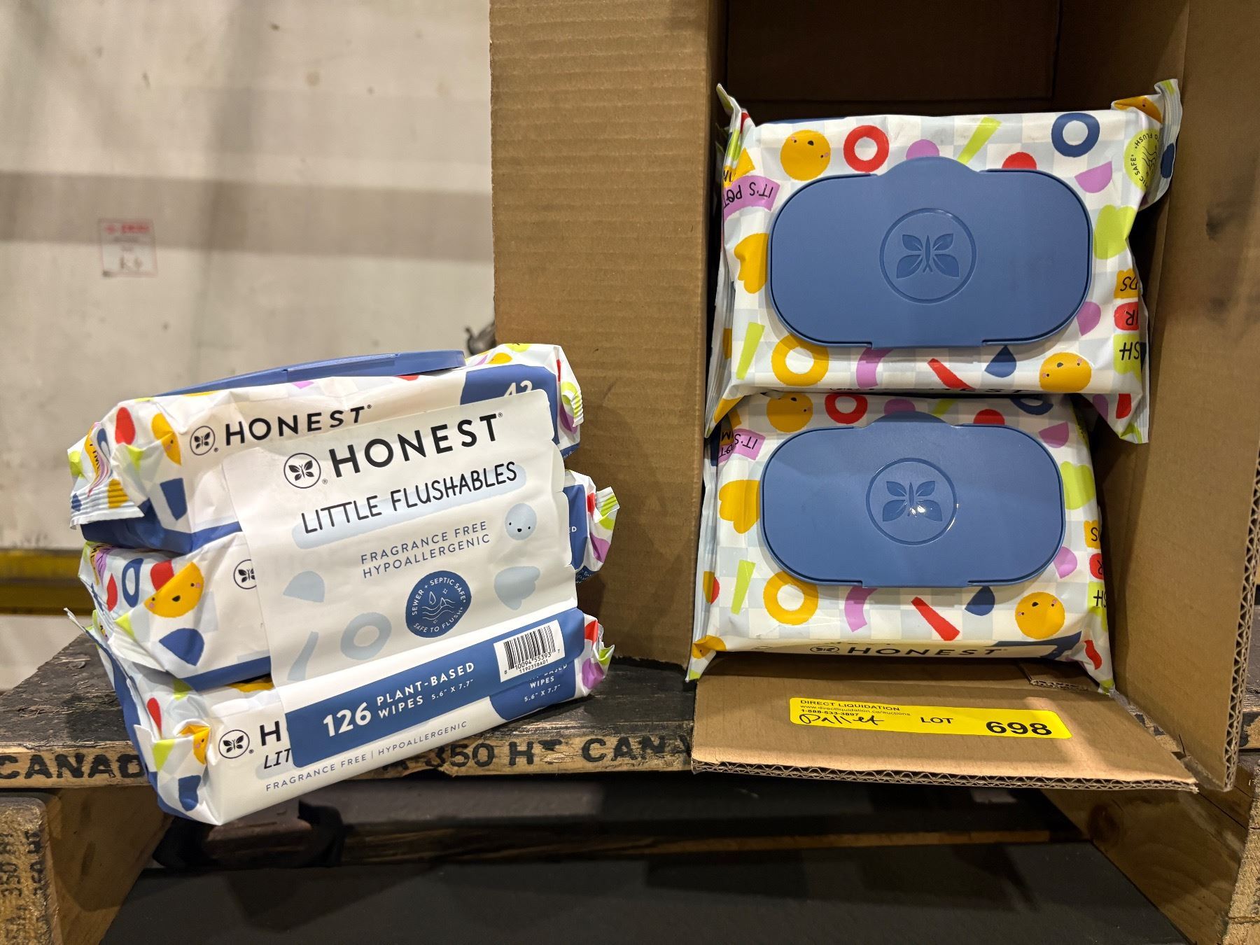 Pallet of Honest Little Flushable Fragrance Free plant based wipes