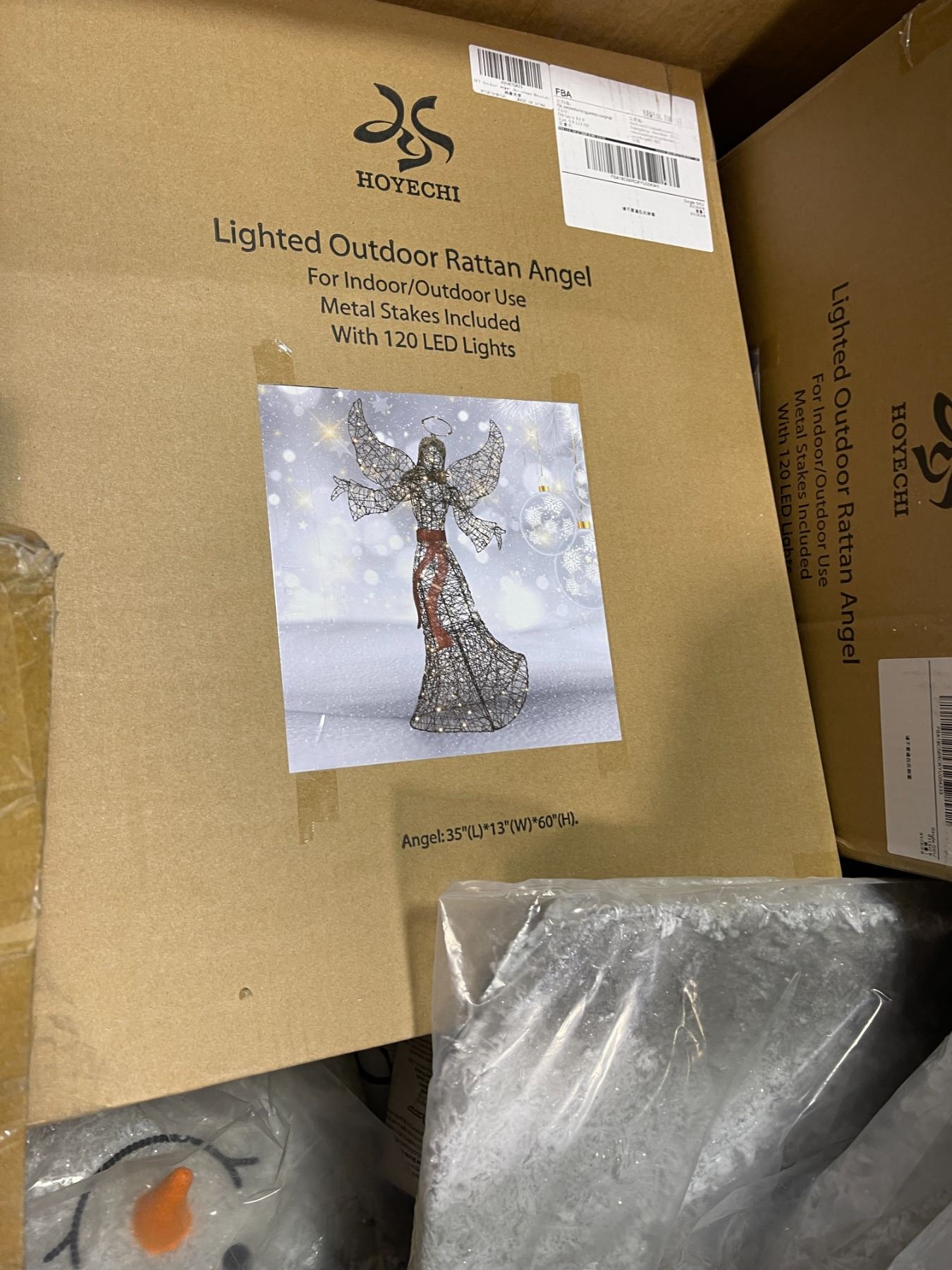 Pallet of Misc - Lighting Outdoor Rattan Angels, Frost Snowman Decor, Etc.