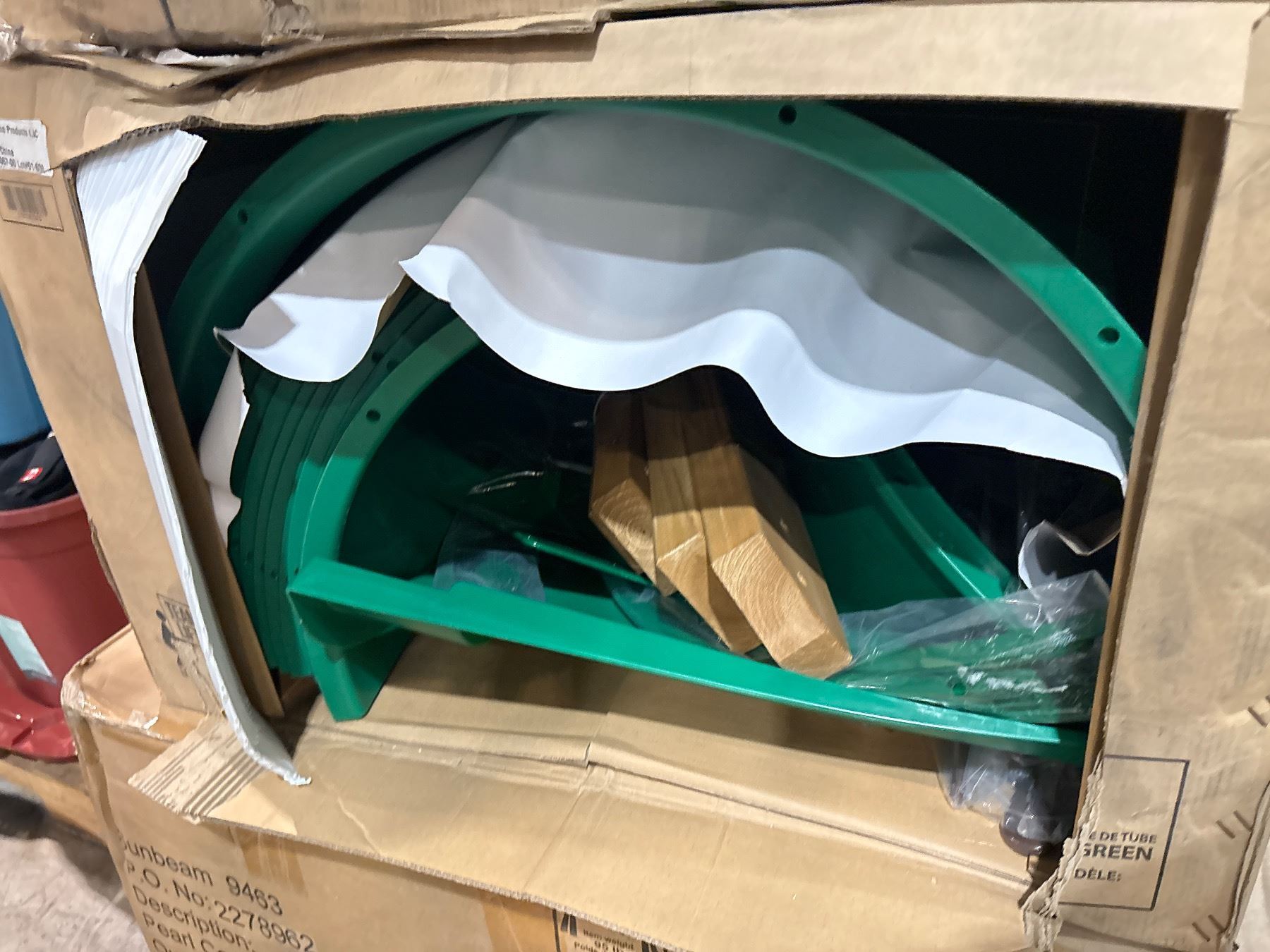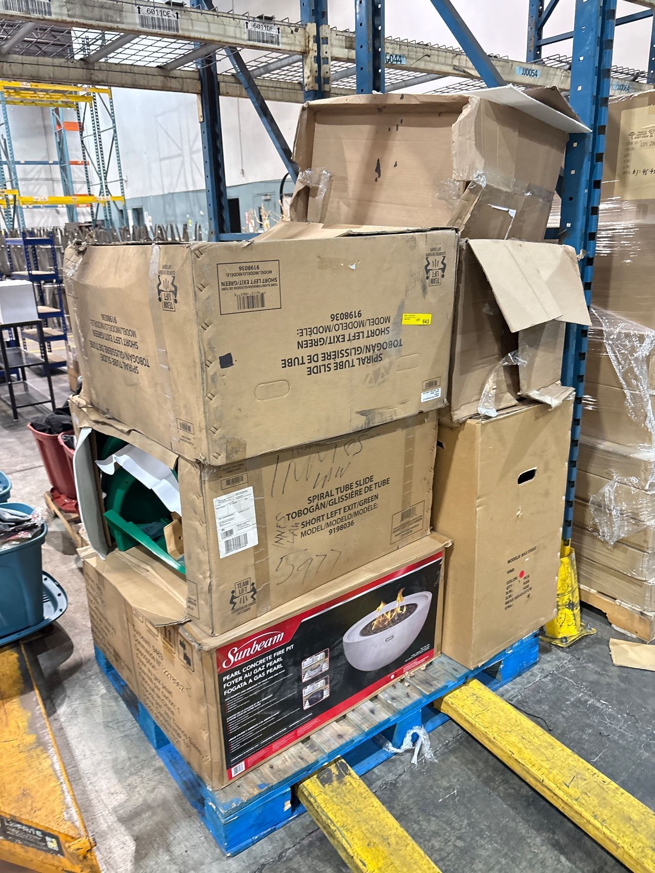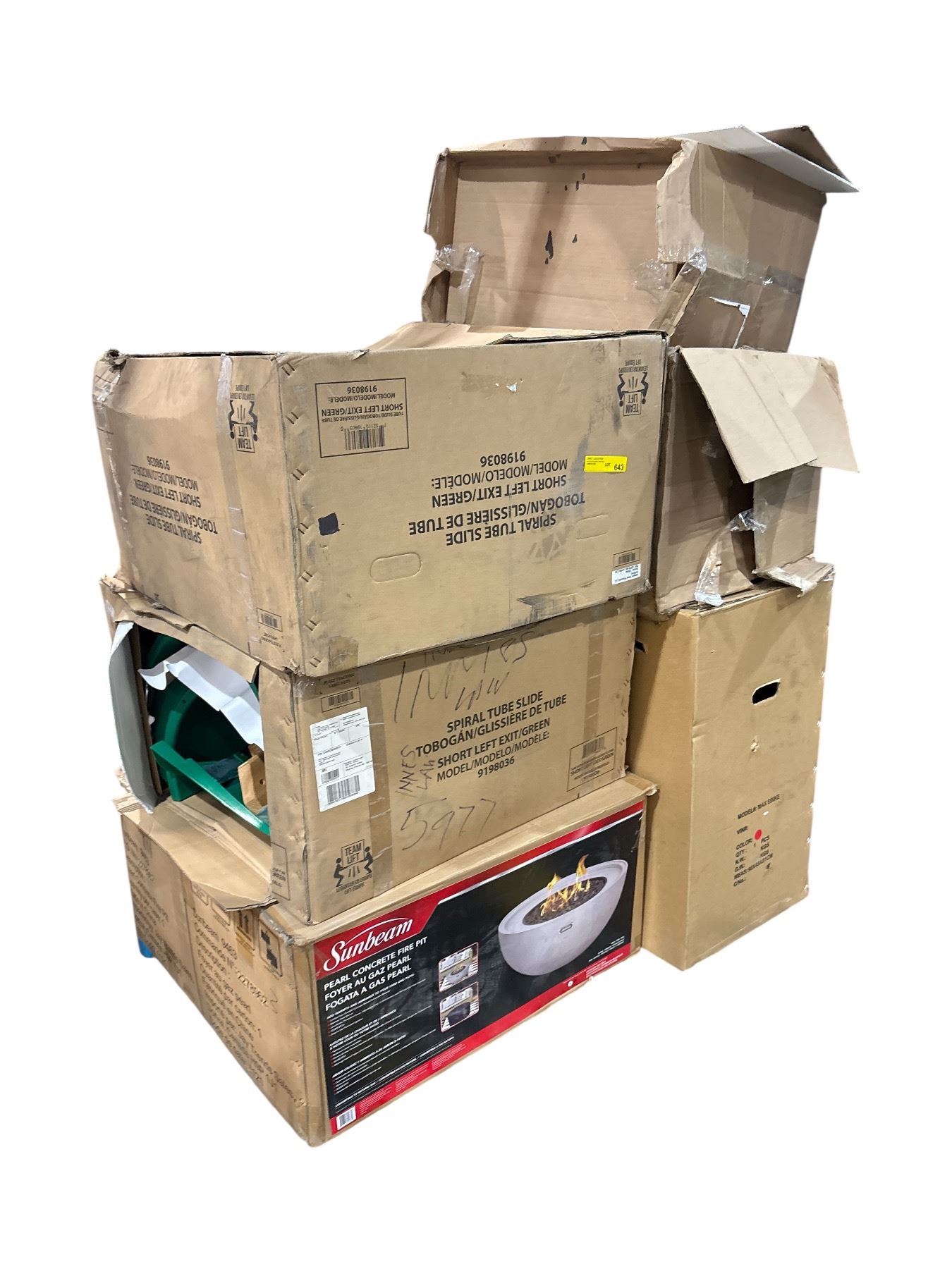 Pallet of Misc - Pear Concrete Fire Pit, Spiral Tube Slides, Elizabeth Ann Shoes