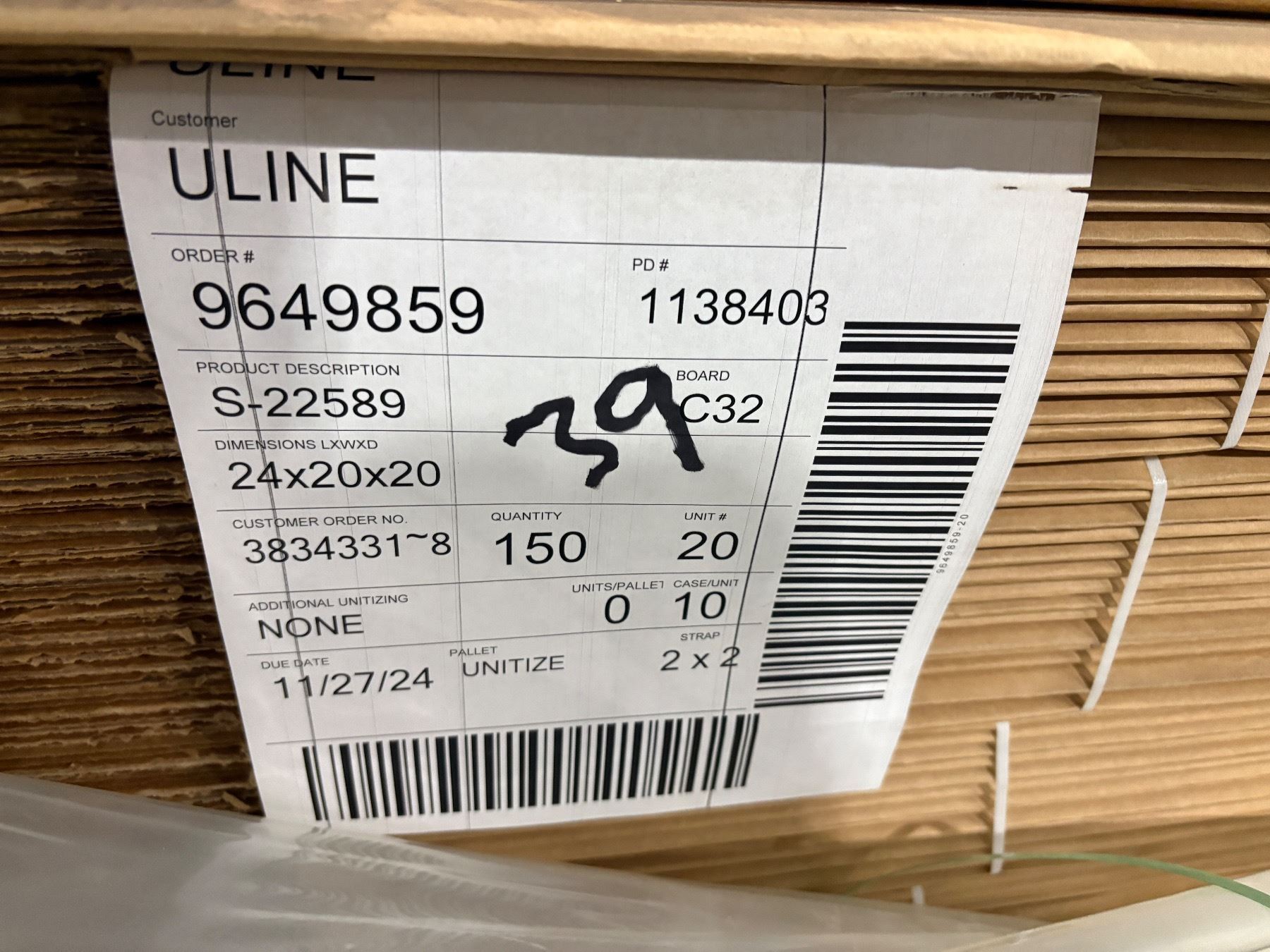 Pallet of Uine 24 x 20 x20 shipping cardboard boxes S-22589