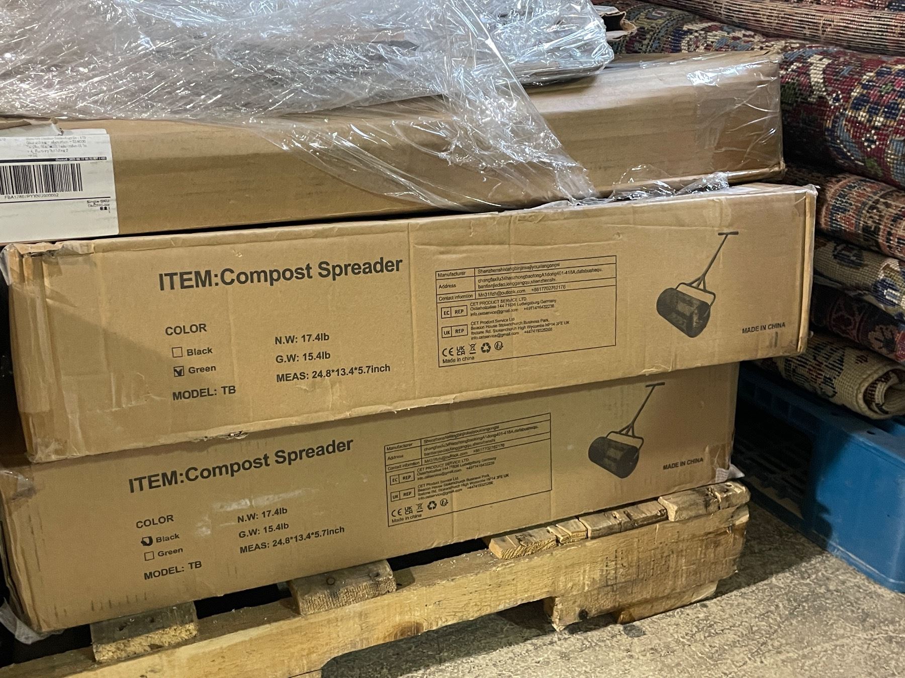 Pallet of assorted Items – Includes compost spreaders, WEDYVKO green rollers etc