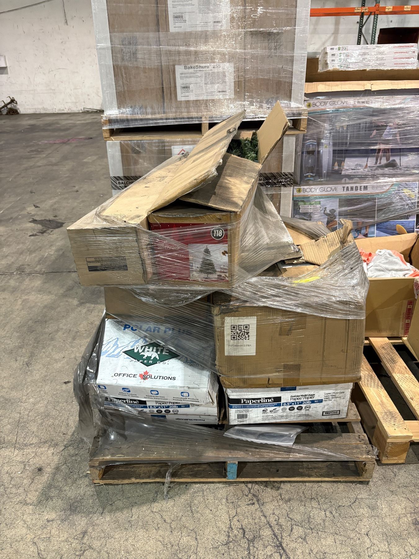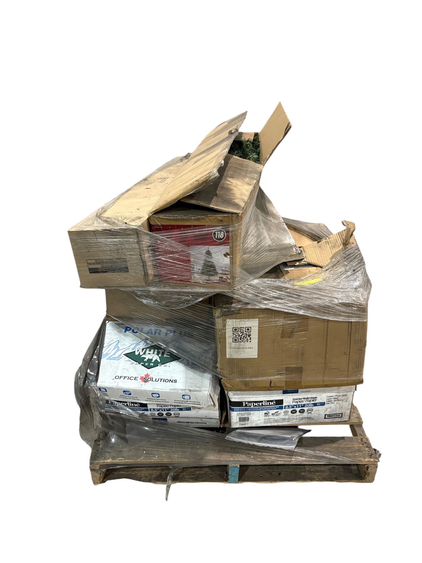 Pallet of misc. office items - christmas tree