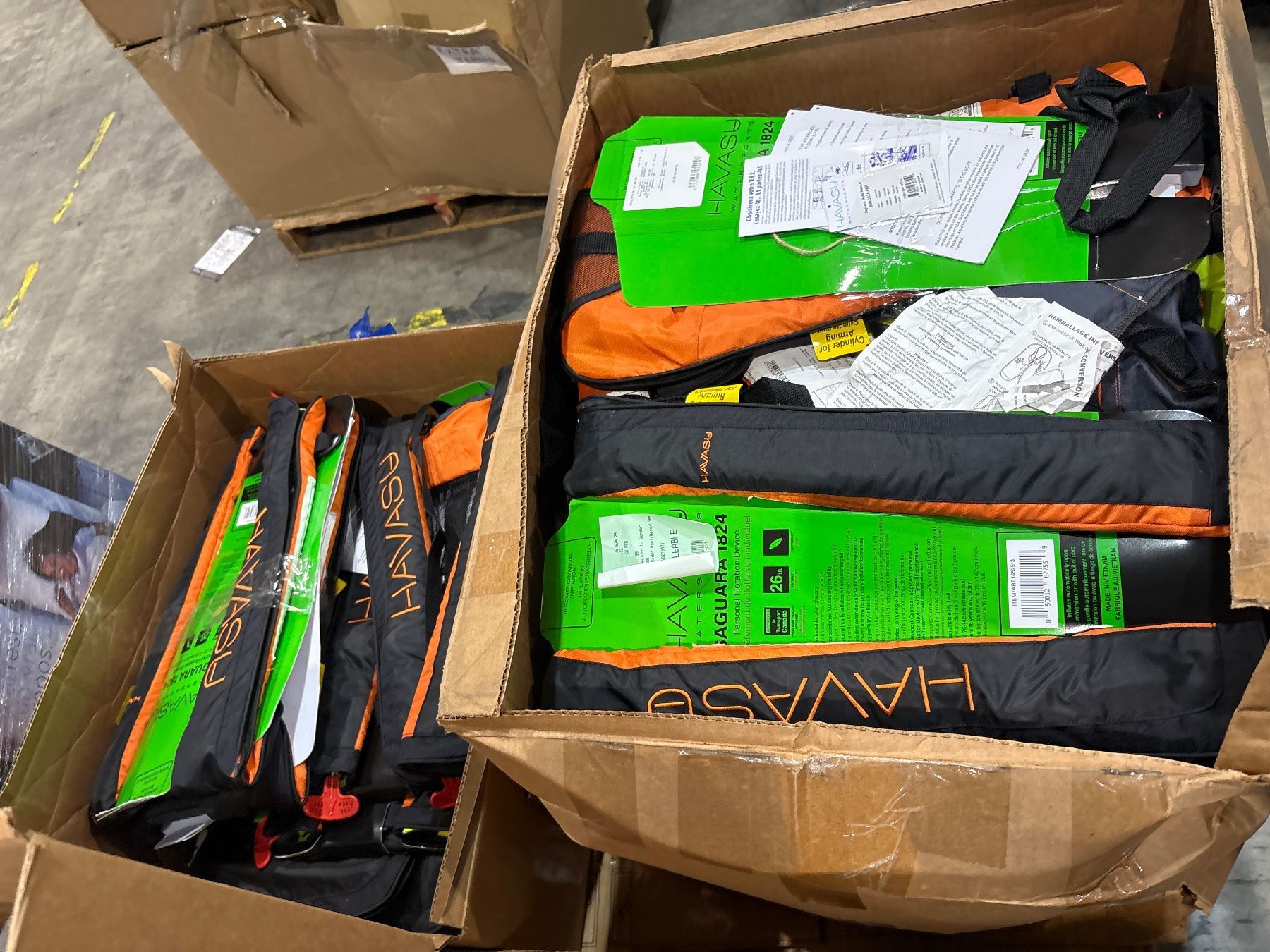 Pallet of new Havasu Water Sports personal floating devices