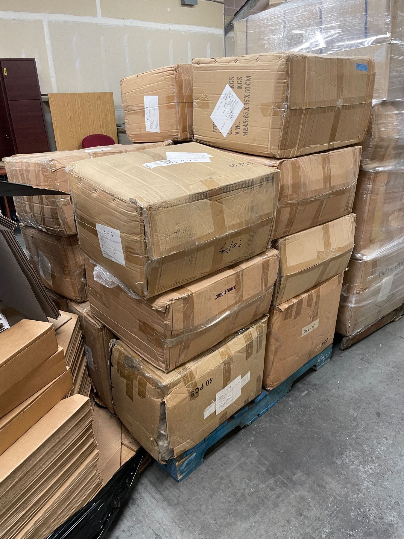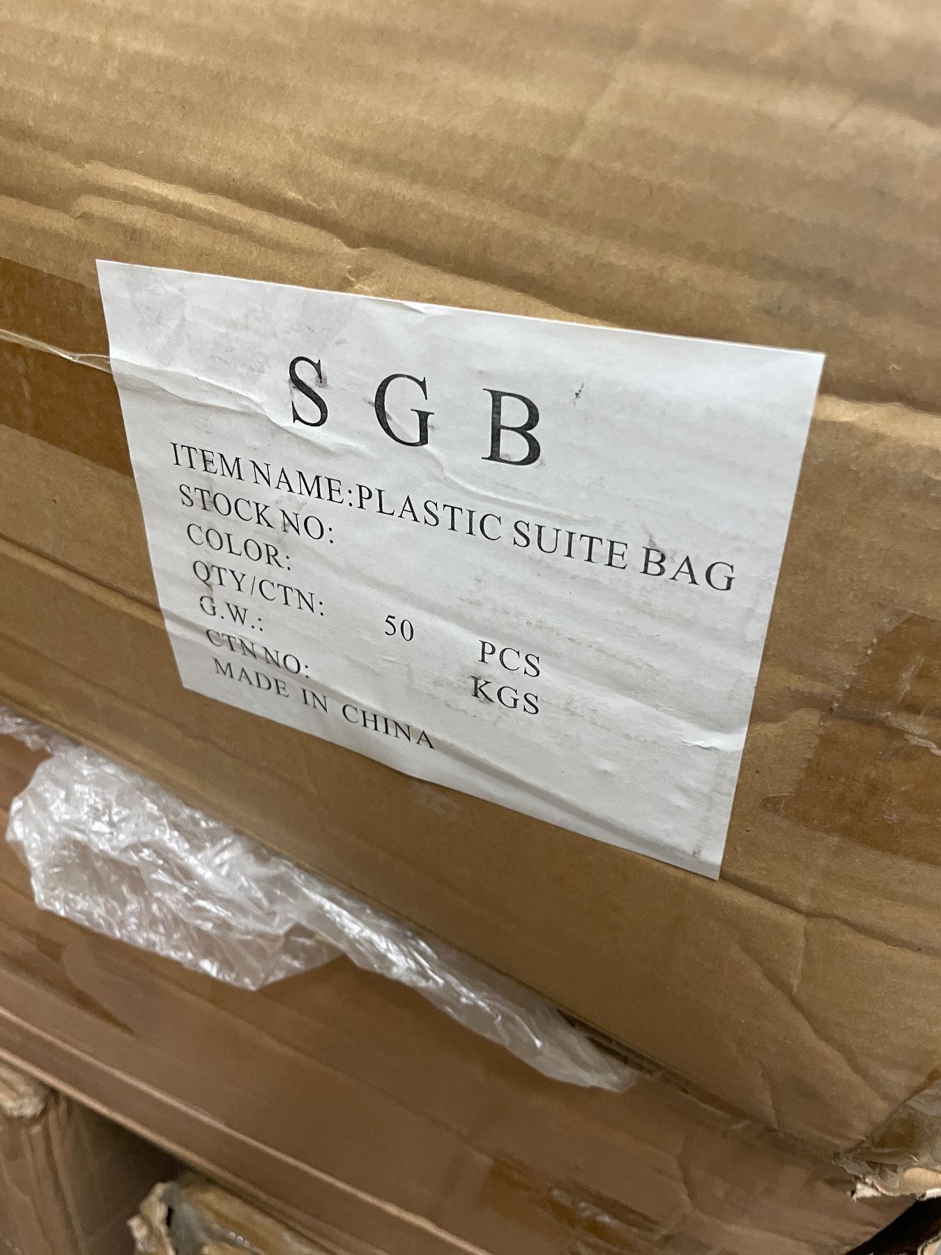 Pallet of plastic suite bags