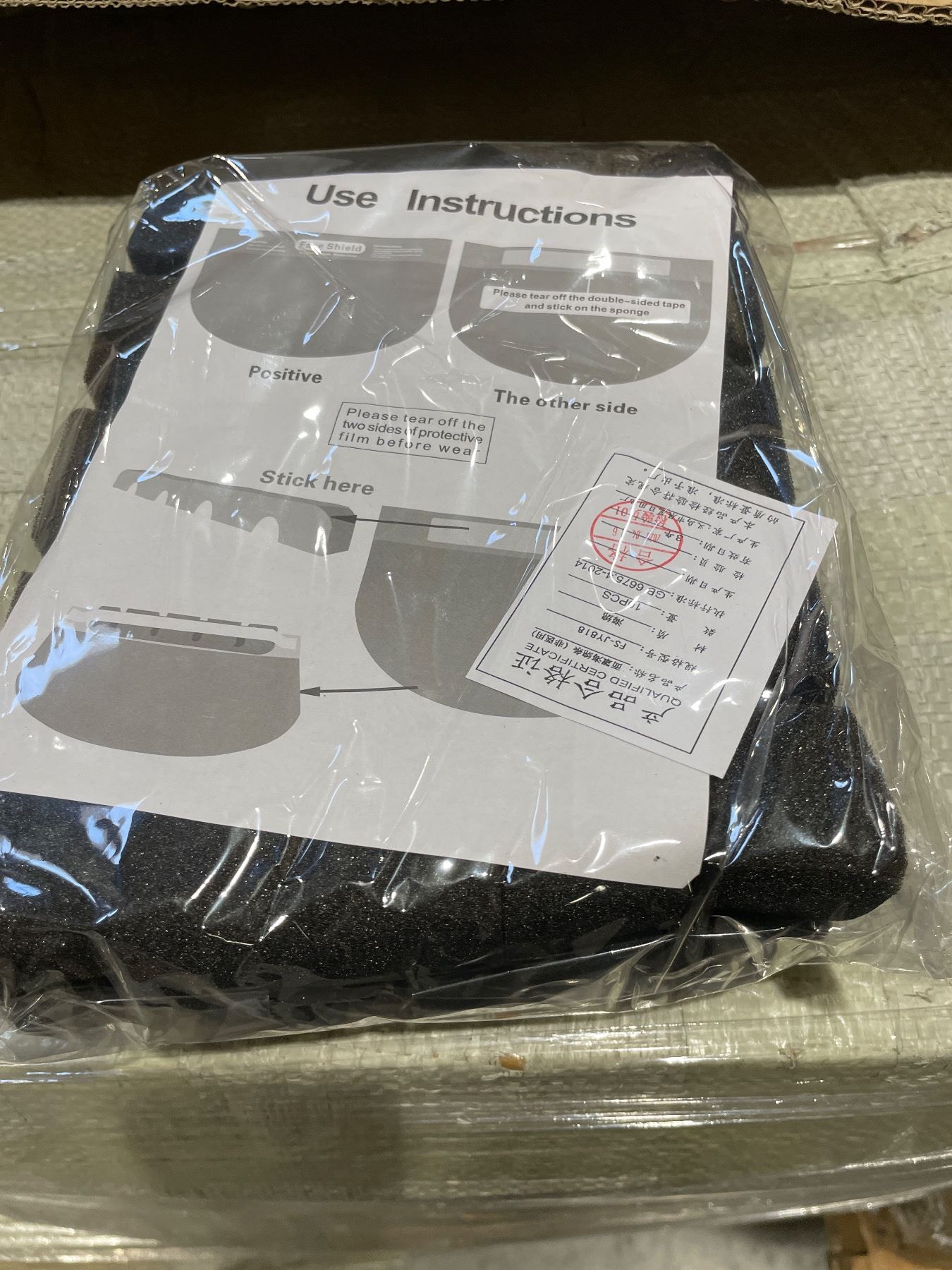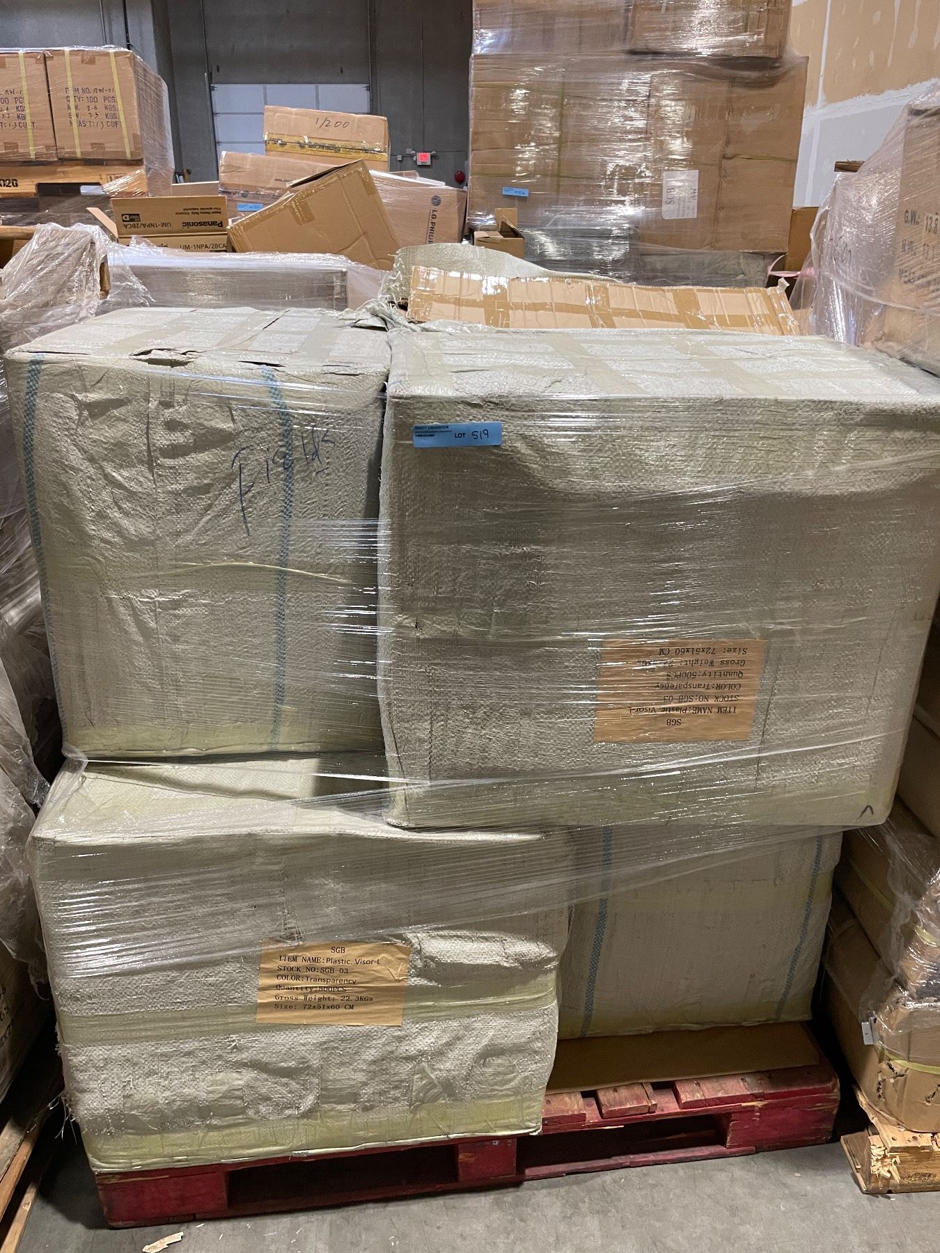 Pallet of transparent plastic visor