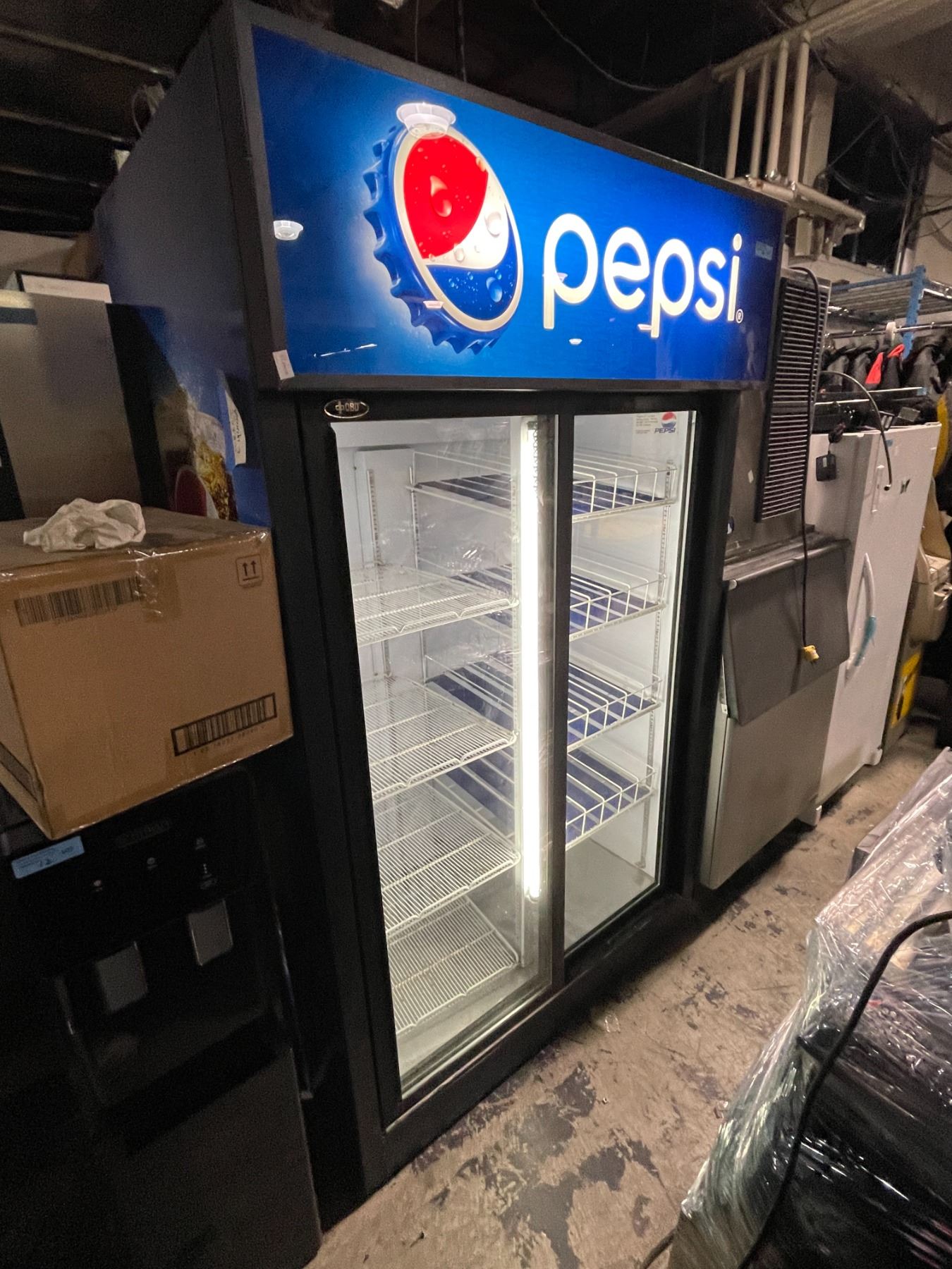 Pepsi Commercial Glass Double-Door Display Refrigerator - Tested to power on