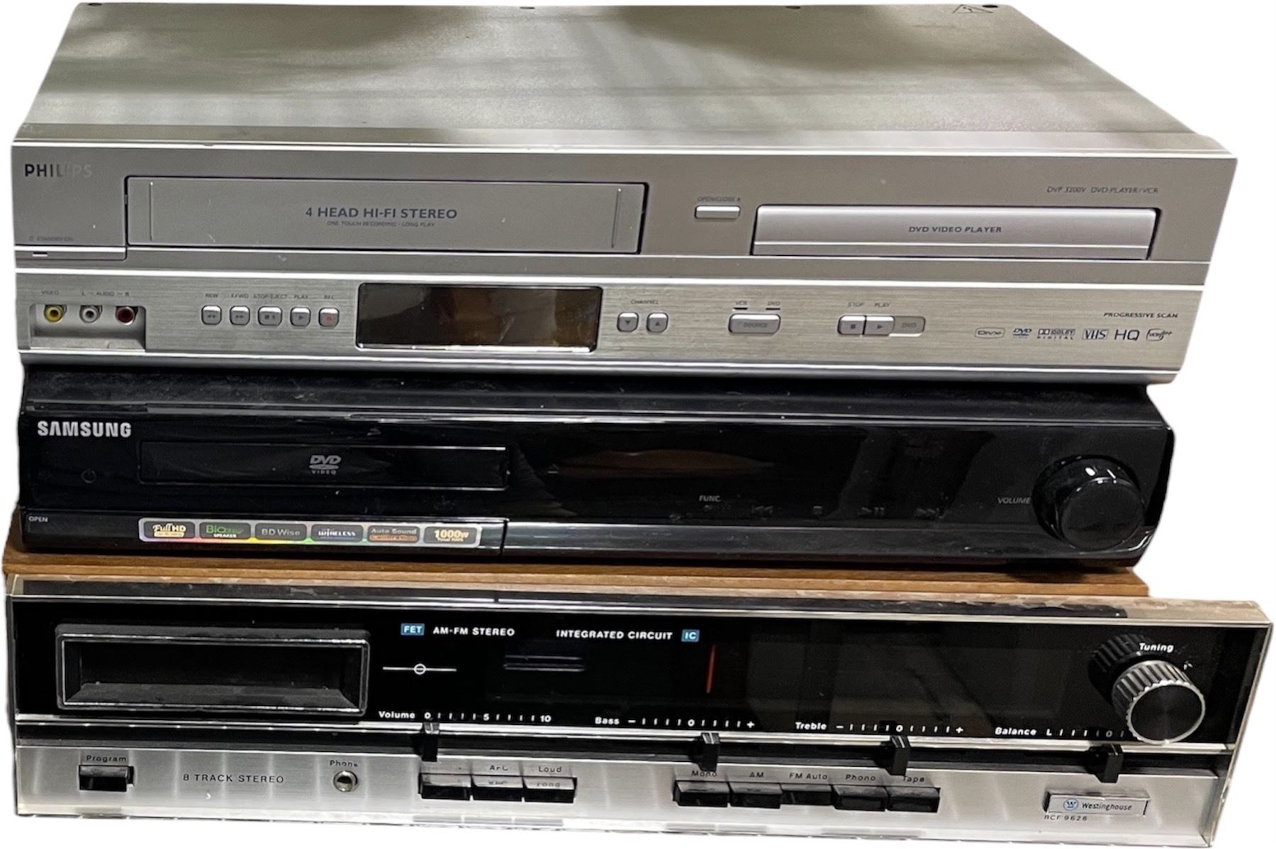 Philips DVD/VCR Combo, Samsung DVD Player & Vintage Stereo Receiver