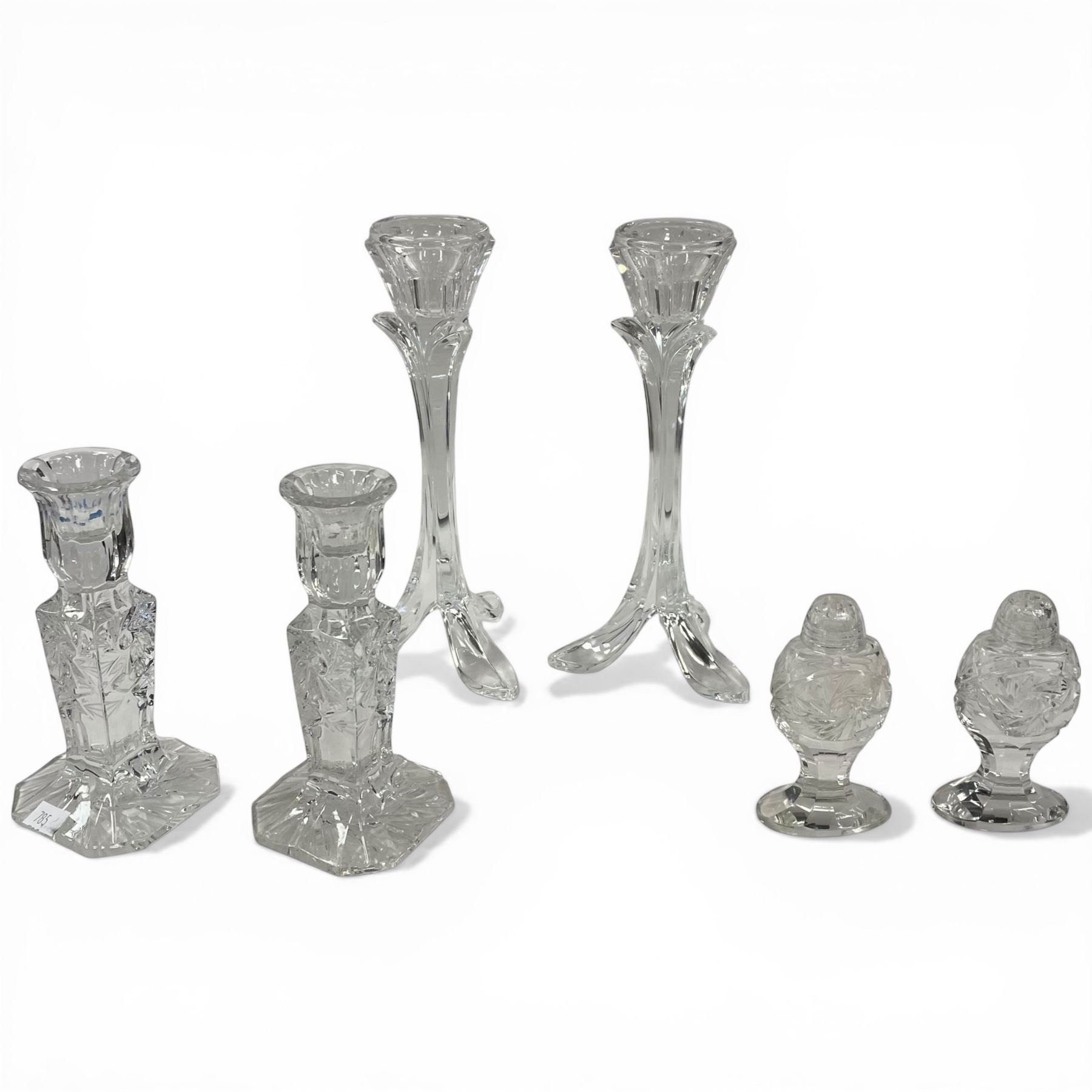Pinwheel Crystal Candlestick Holders, S&P Shakers and Pair of Floral Candle Holders