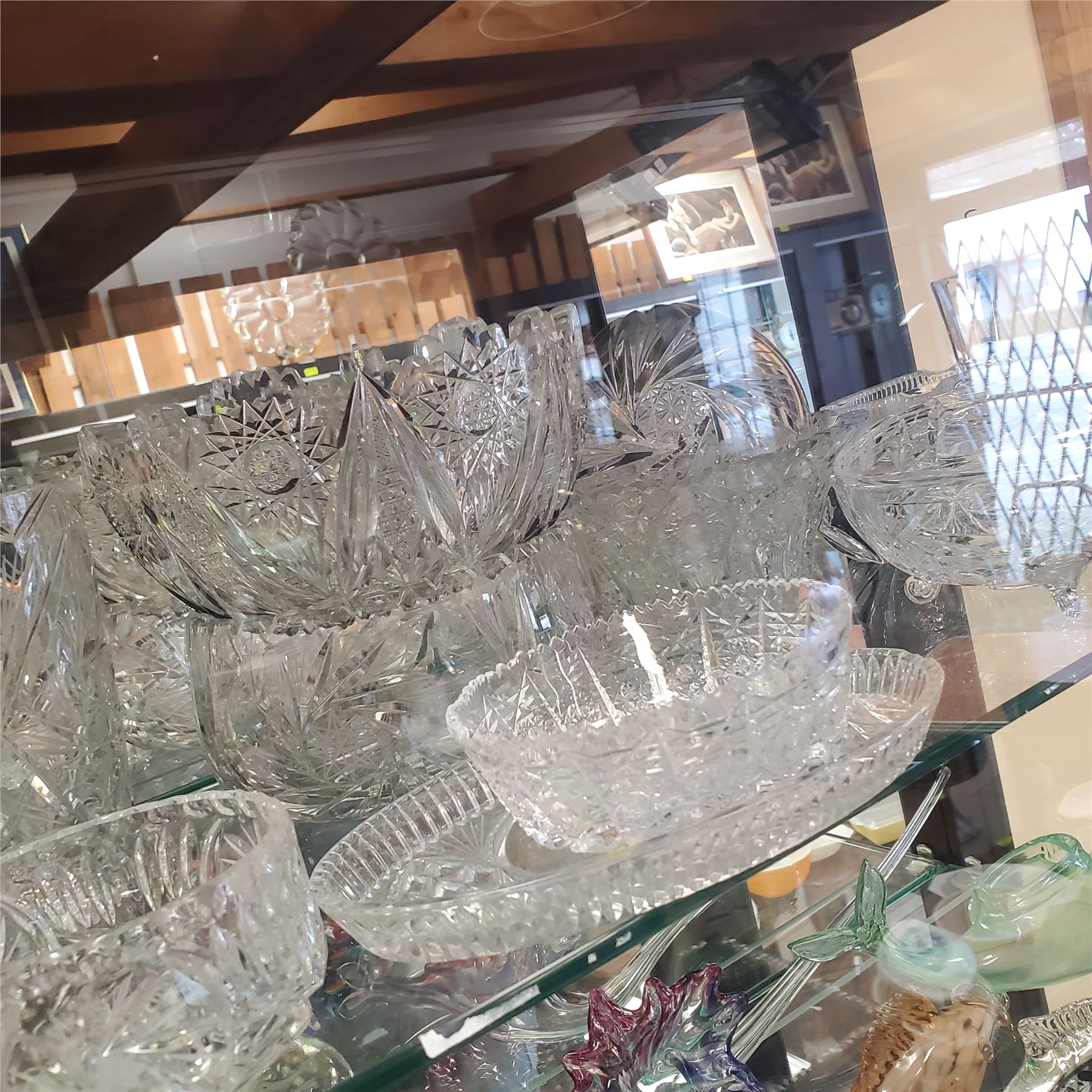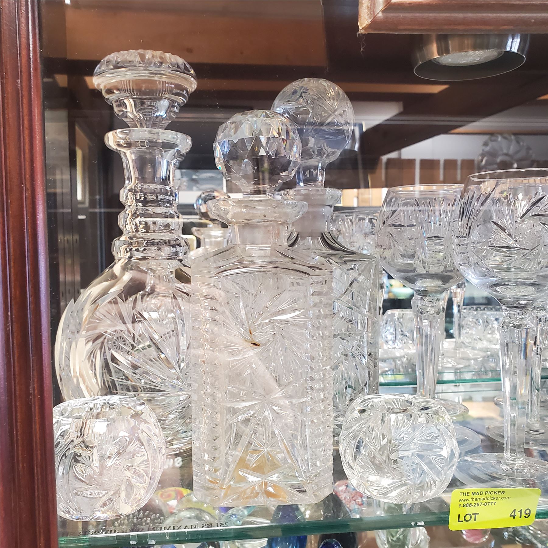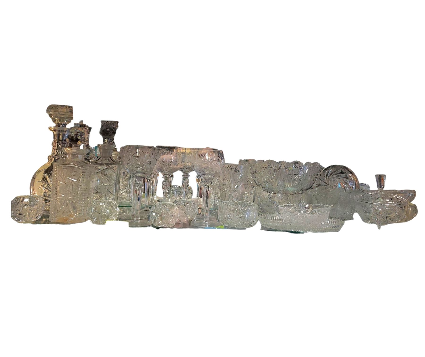 Pinwheel crystal collection featuring 26 pieces, including decanters, bowls, glasses, candlestick holders, and additional items. All pieces display the classic pinwheel cut pattern. The collection is as pictured, showcasing intricate craftsmanship in an elegant design.
