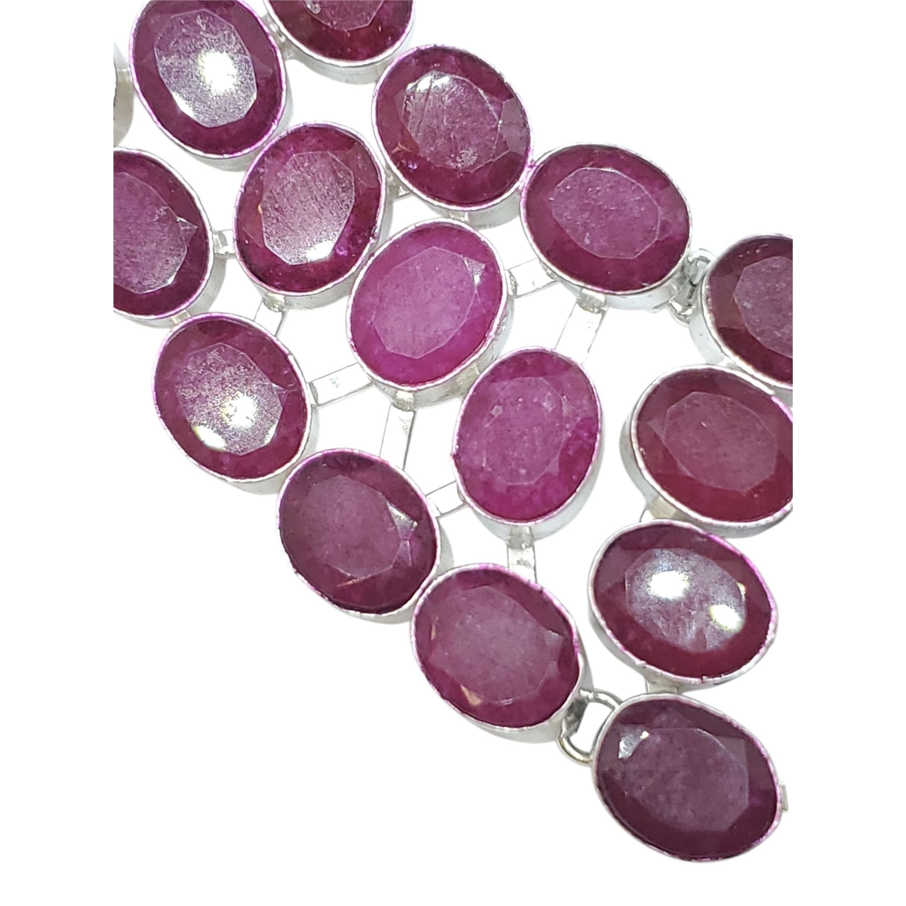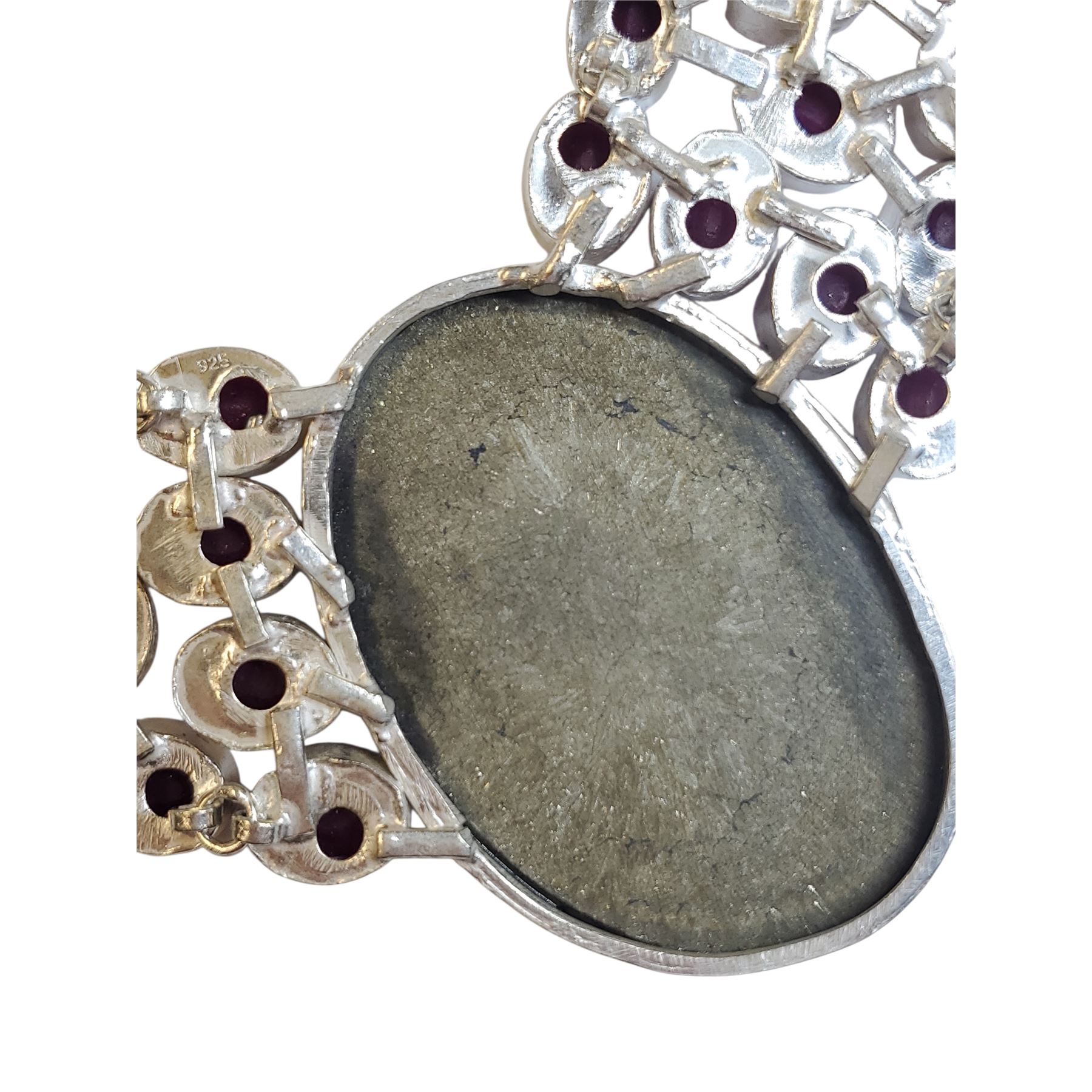 Polished Pyrite & Faceted Garnet Collar Necklace in a Silver Setting - Center stone is 37 mm x 53mm - Toggle Clasp