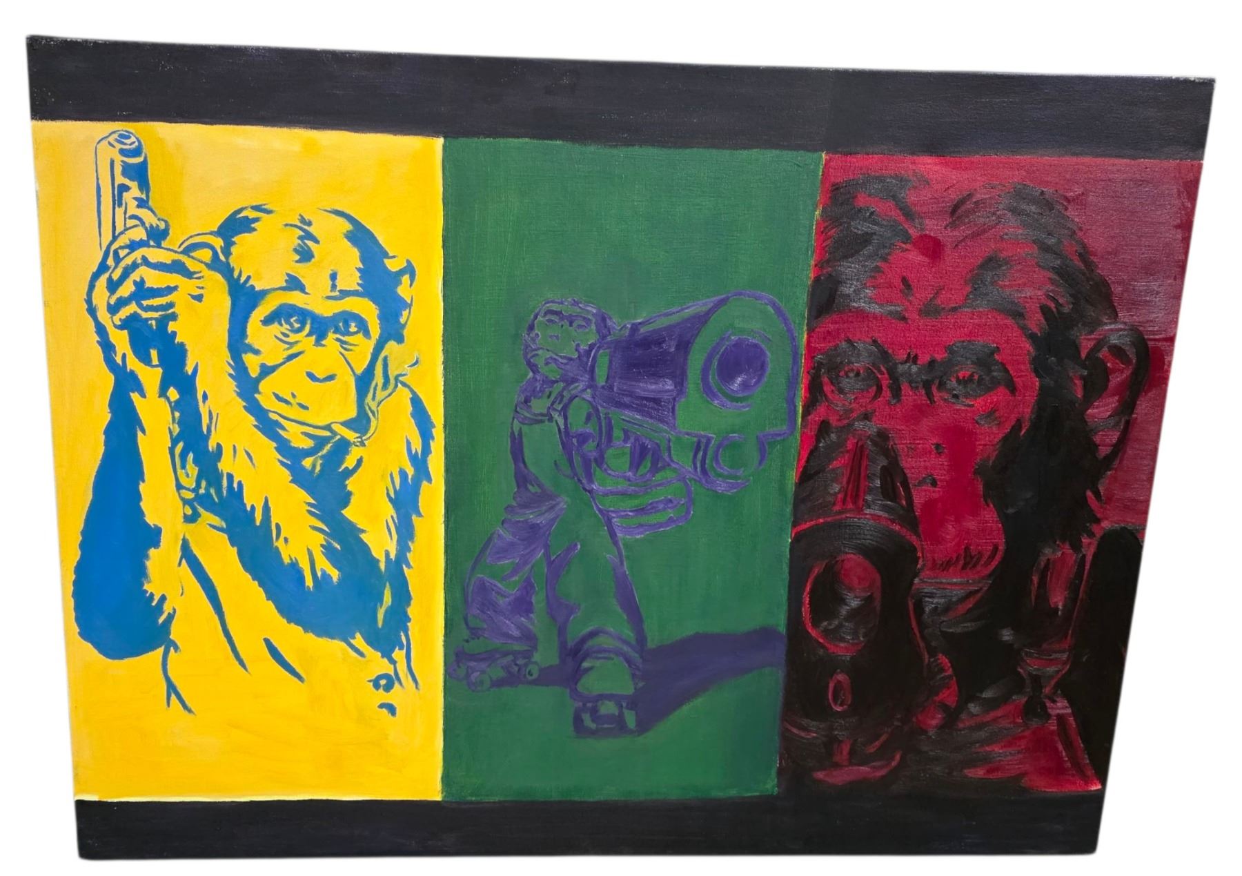 Pop Art - Triptych Painting of a Primate Holding a Gun