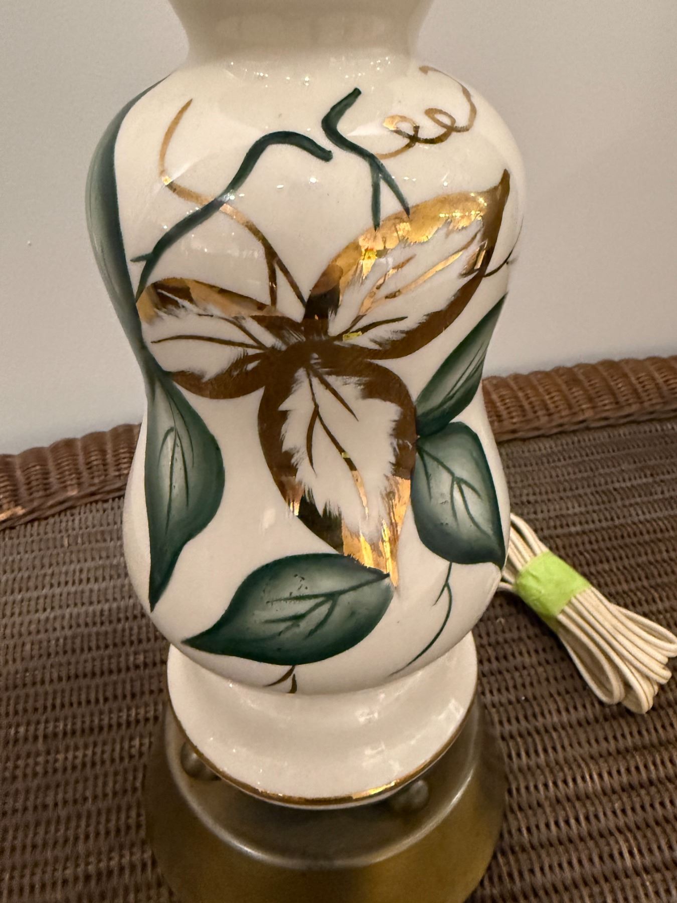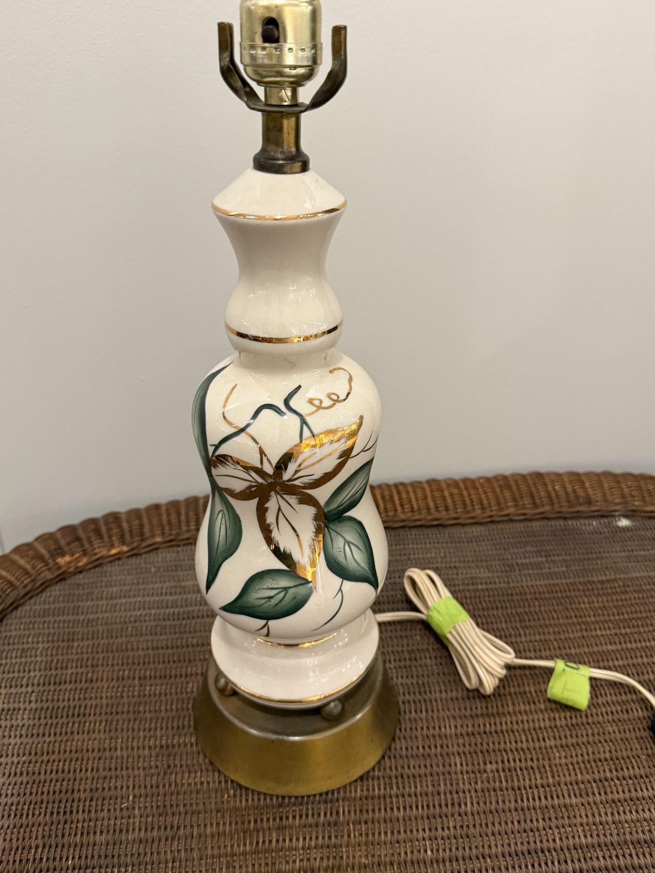 Porcelain Table Lamp Base & Metal Vase (Vase is 10" tall x 10" diameter)