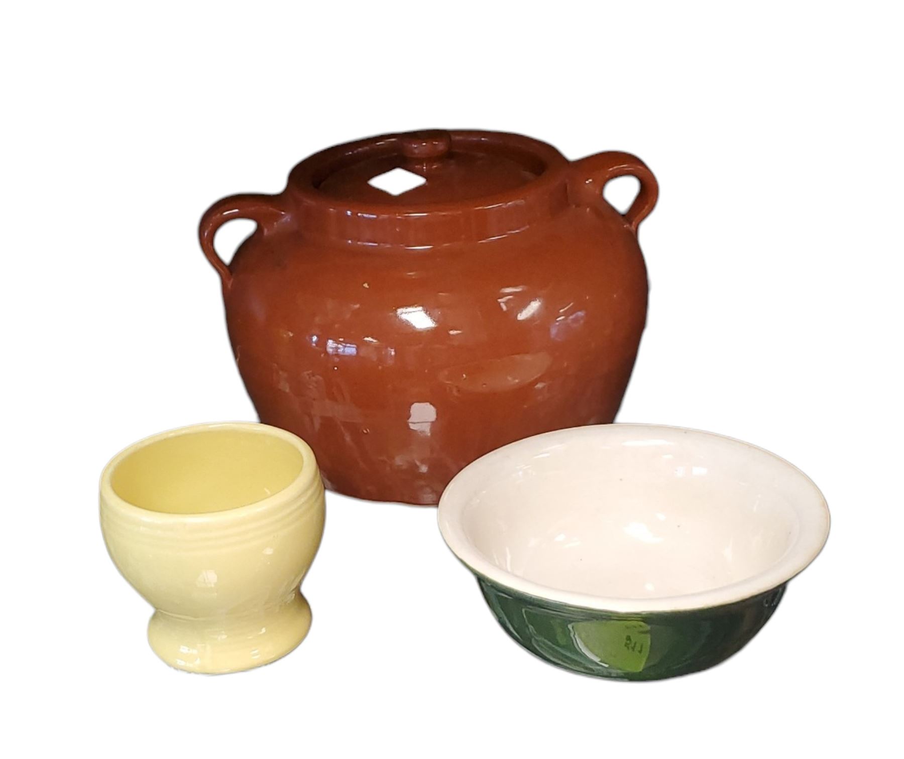 This trio includes pottery pieces from Medicine Hat Potteries, Medalta and Albert Potteries. Features a bean pot showcasing design and craftsmanship representative of these Canadian pottery brands. Item is as pictured.