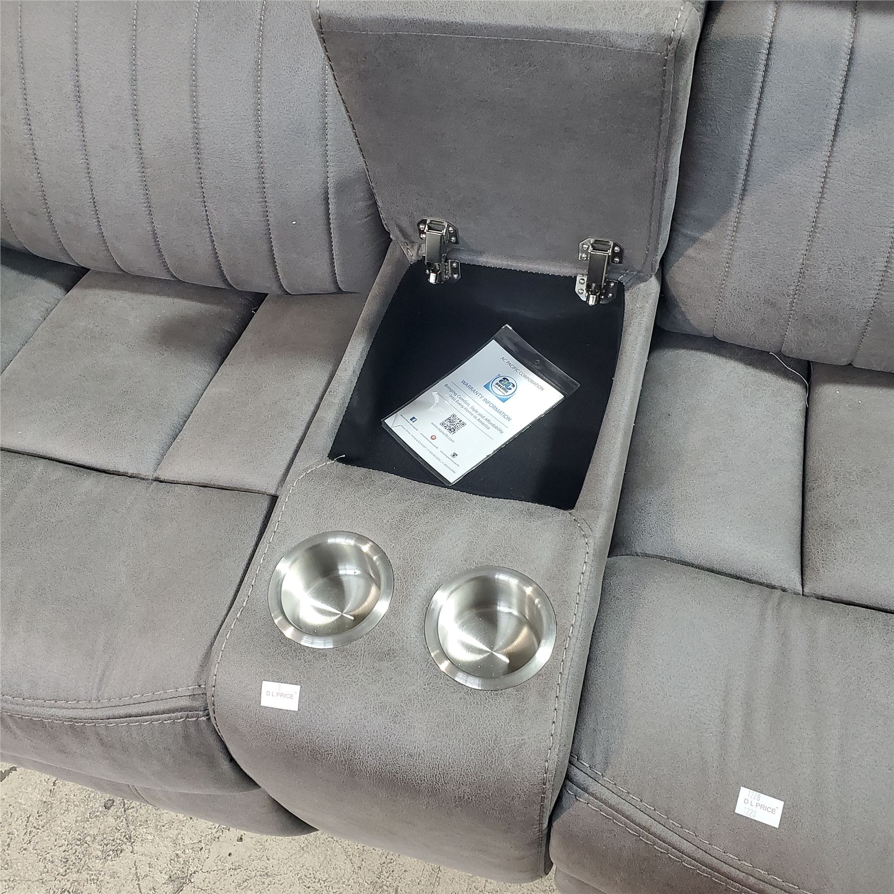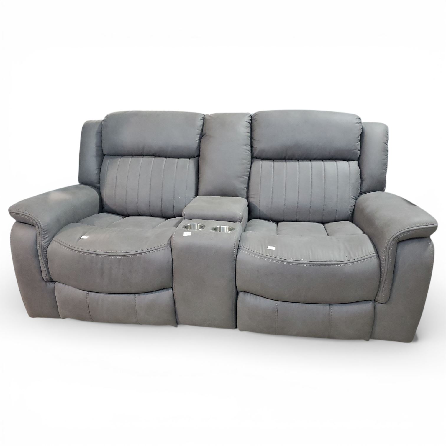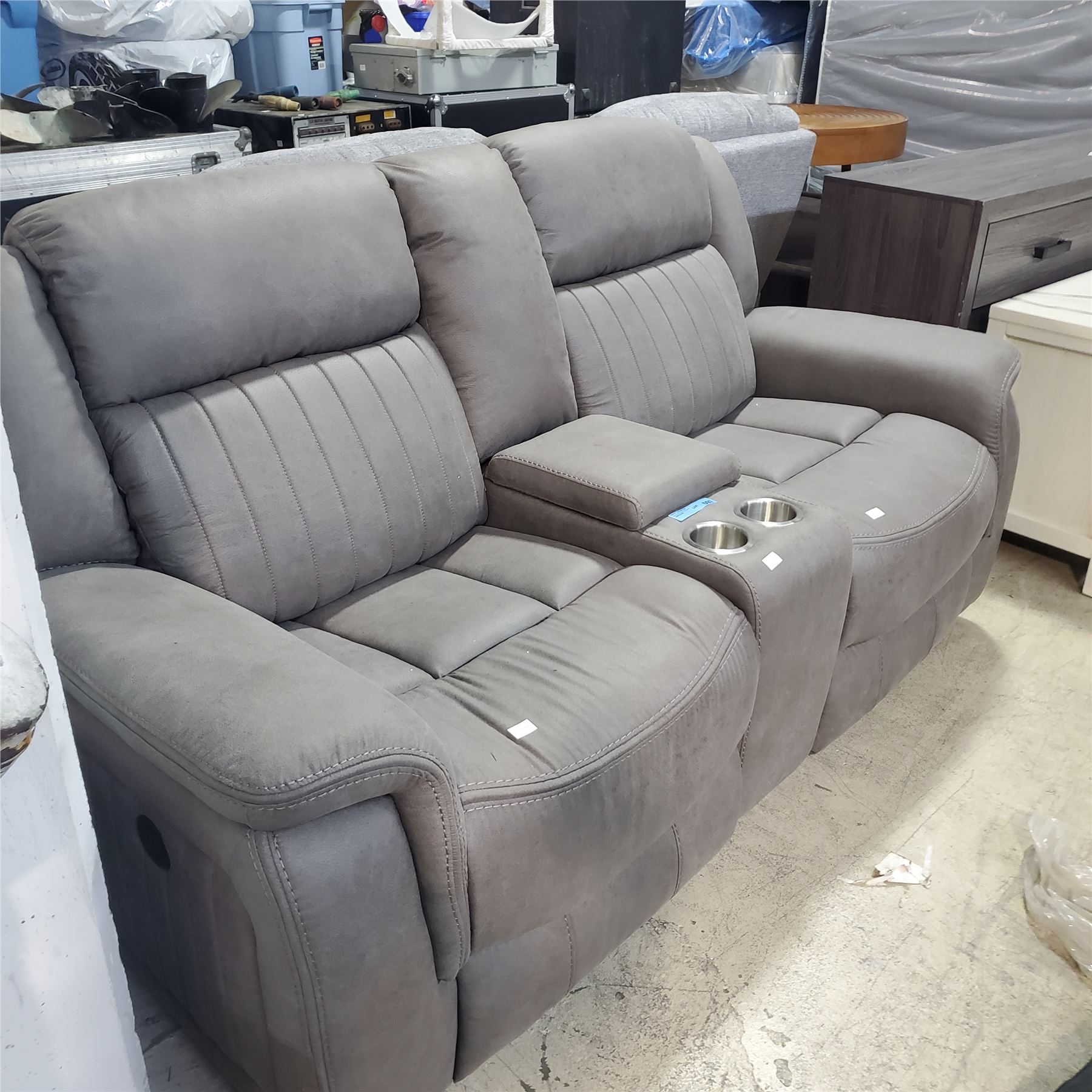 Power Leather Reclining Loveseat with Console - Grey, Approx. H38" x 72" x D30"