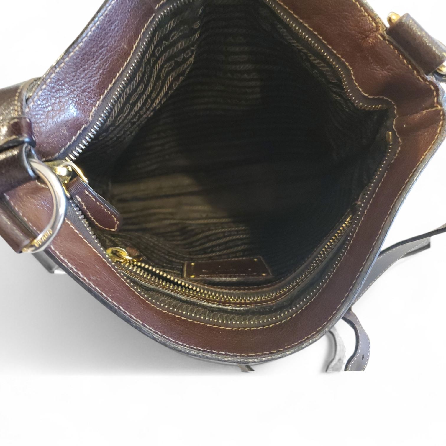 Prada Logo Jacquard Brown Canvas Crossbody Bag - No COA