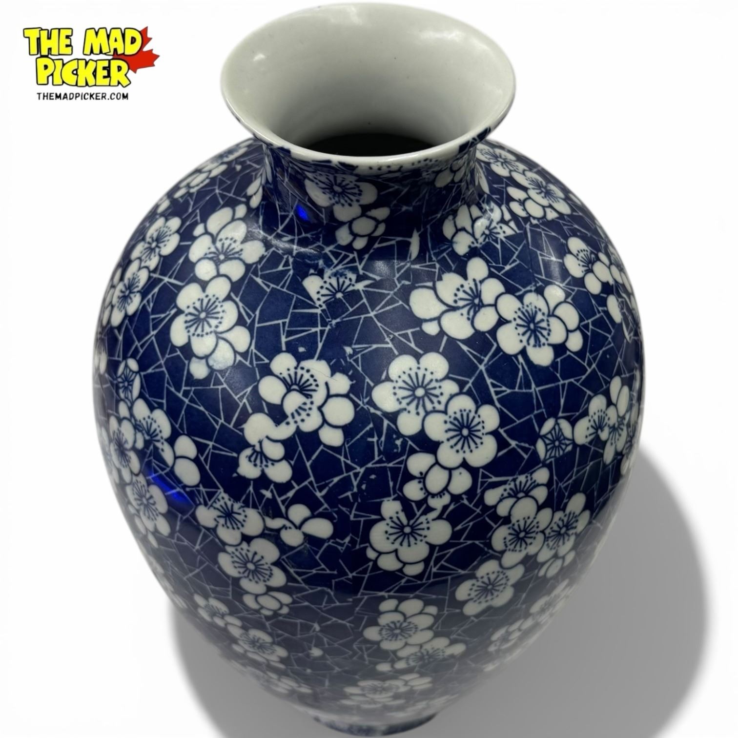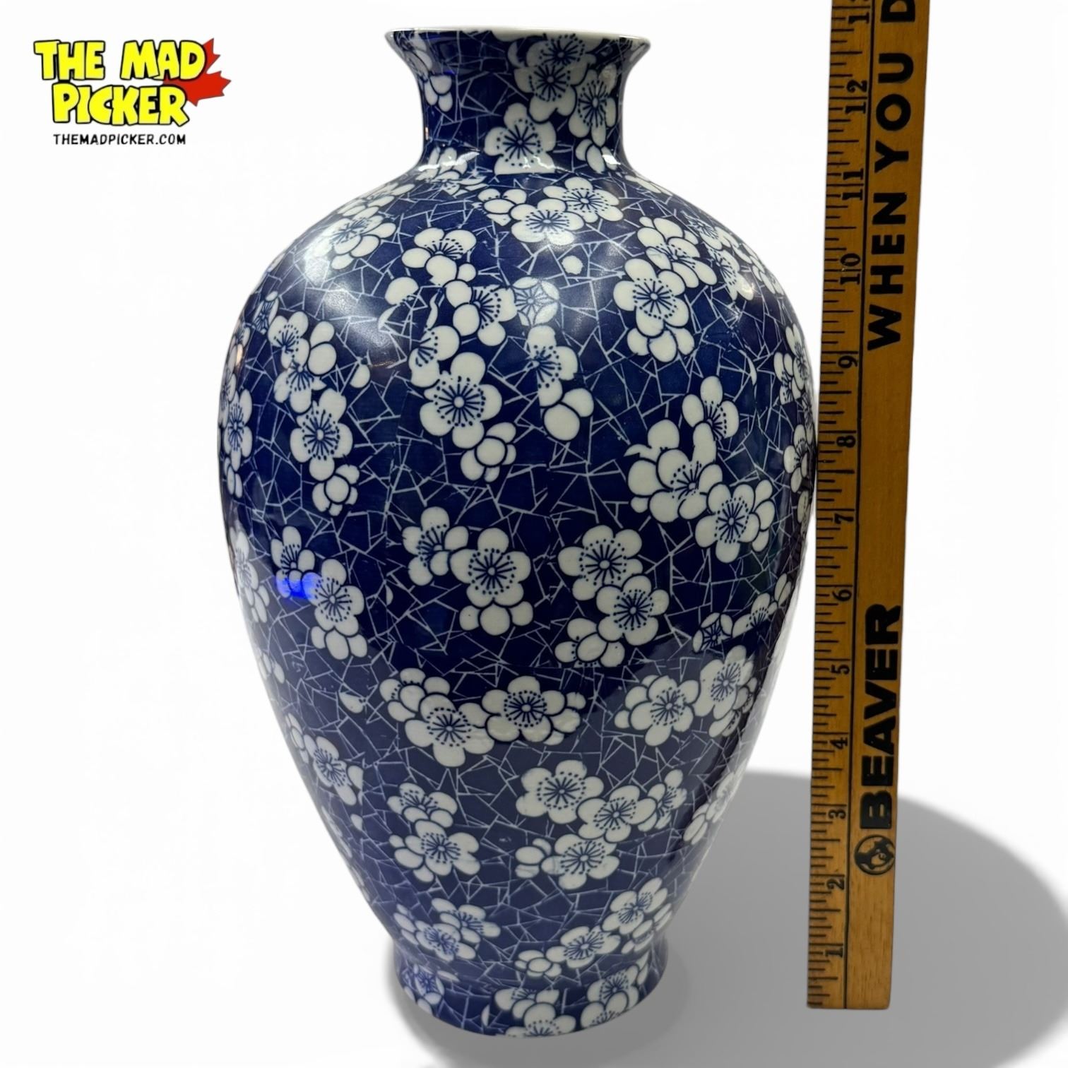 Pretty Blue Floral Porcelain Vase - 13" tall