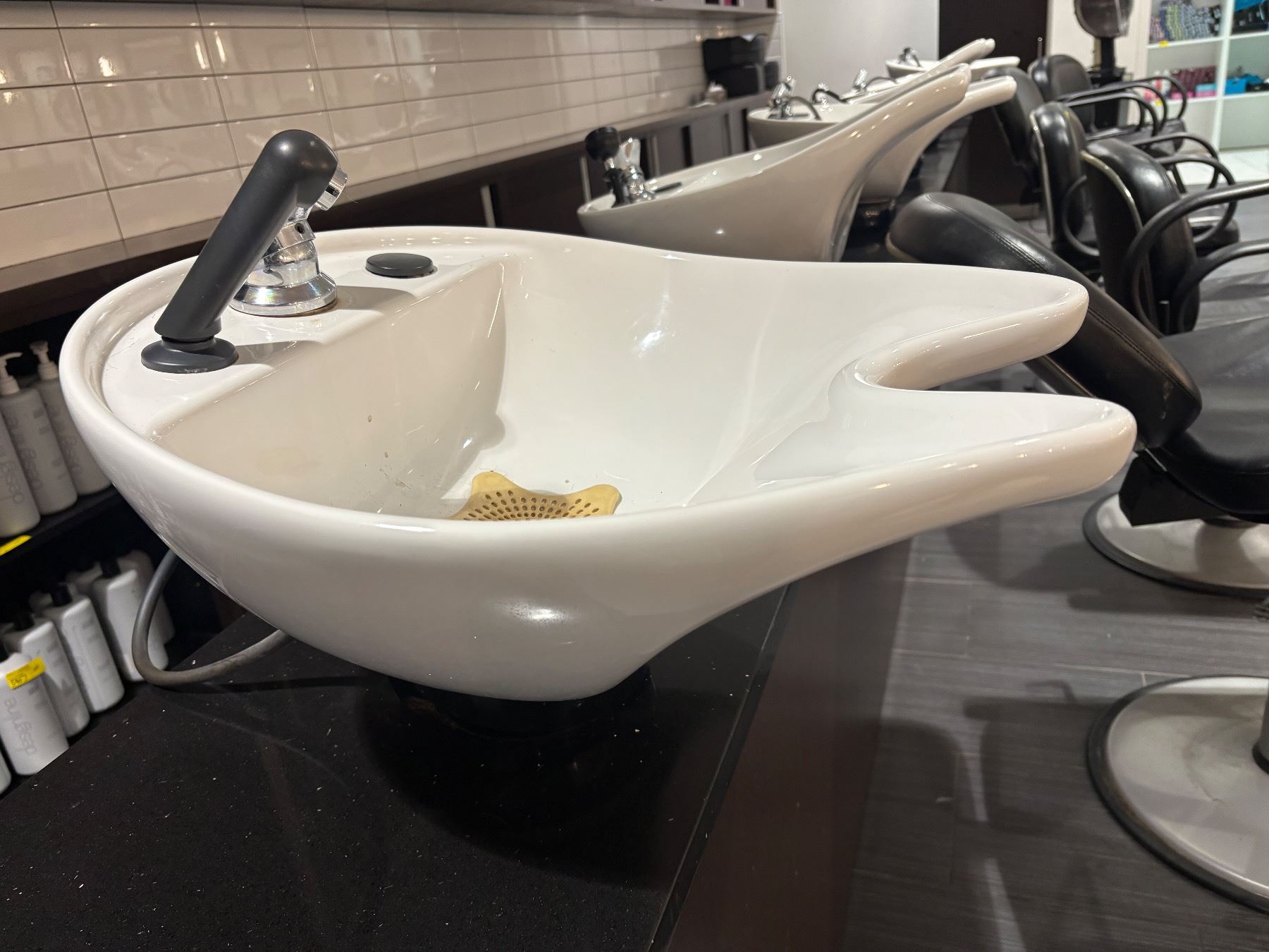 Professional White Ceramic Tilting Shampoo Bowl with Fixtures