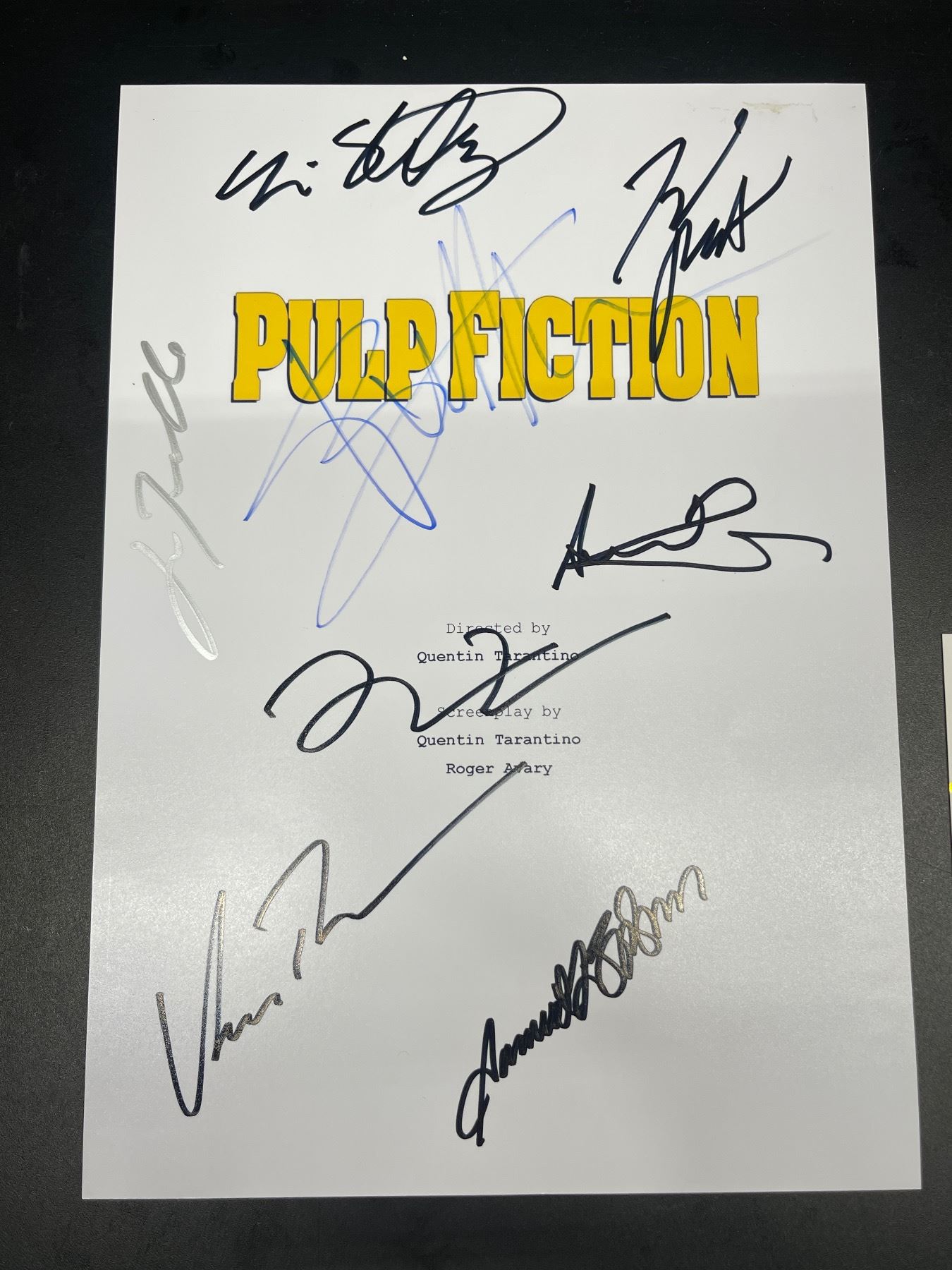 Pulp Fiction Signed Script Cover w/COA Signed By: John Travolta, Samuel L Jackson, Uma Thurman, Tim Roth, Amanda Plummer, Eric Stoltz, Bruce Willis, Quentin Taratino