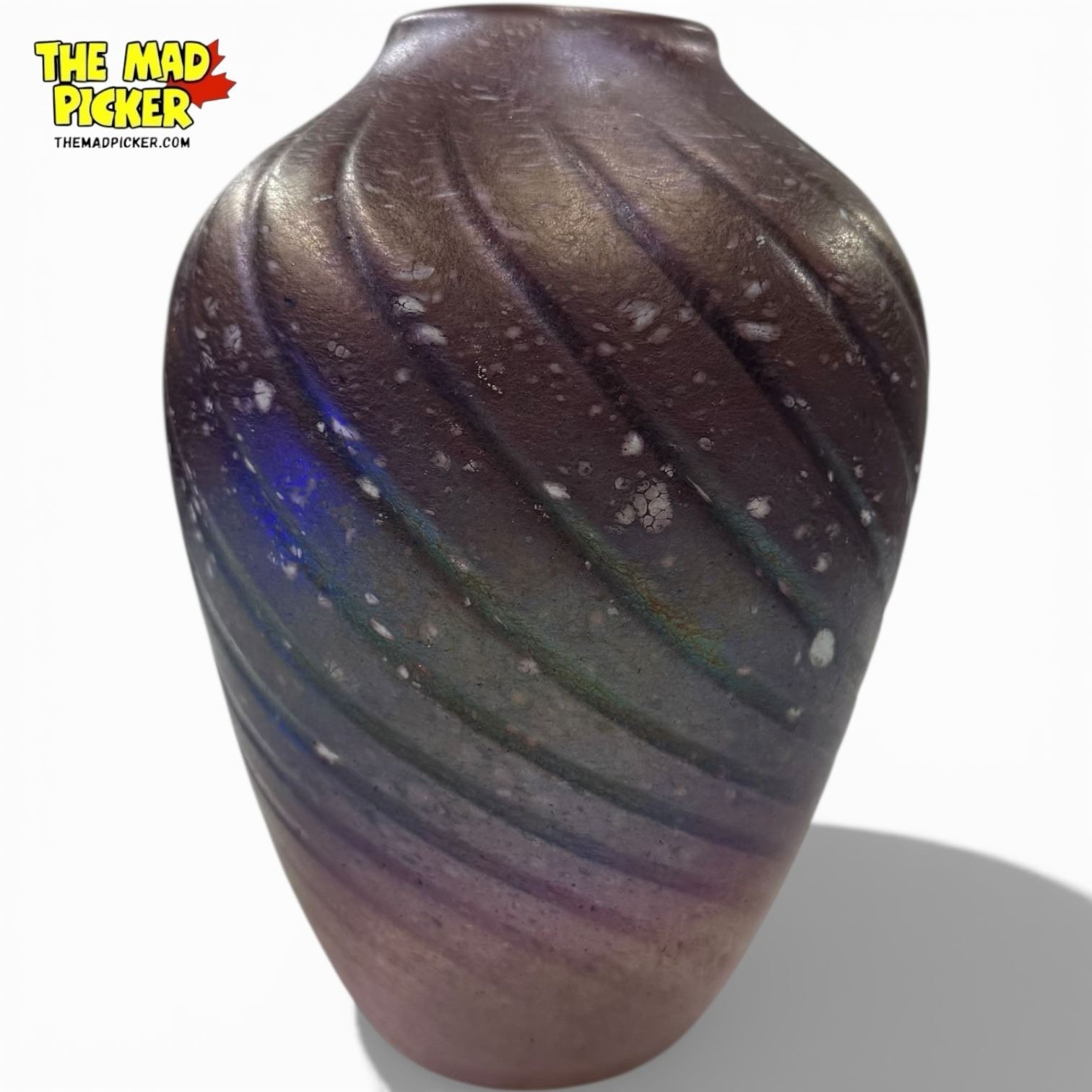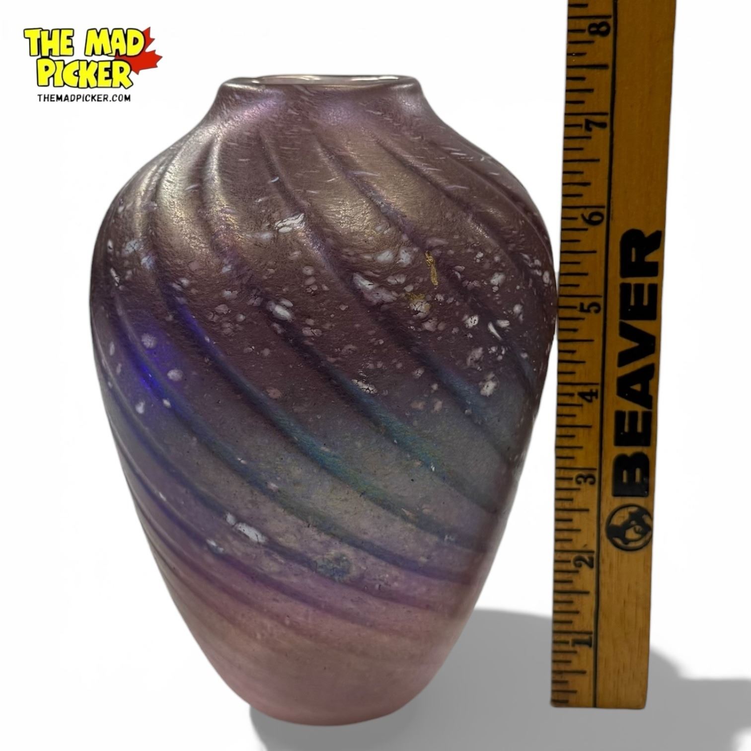 Purple Blown Glass Swirl Pattern Vase - 8" tall