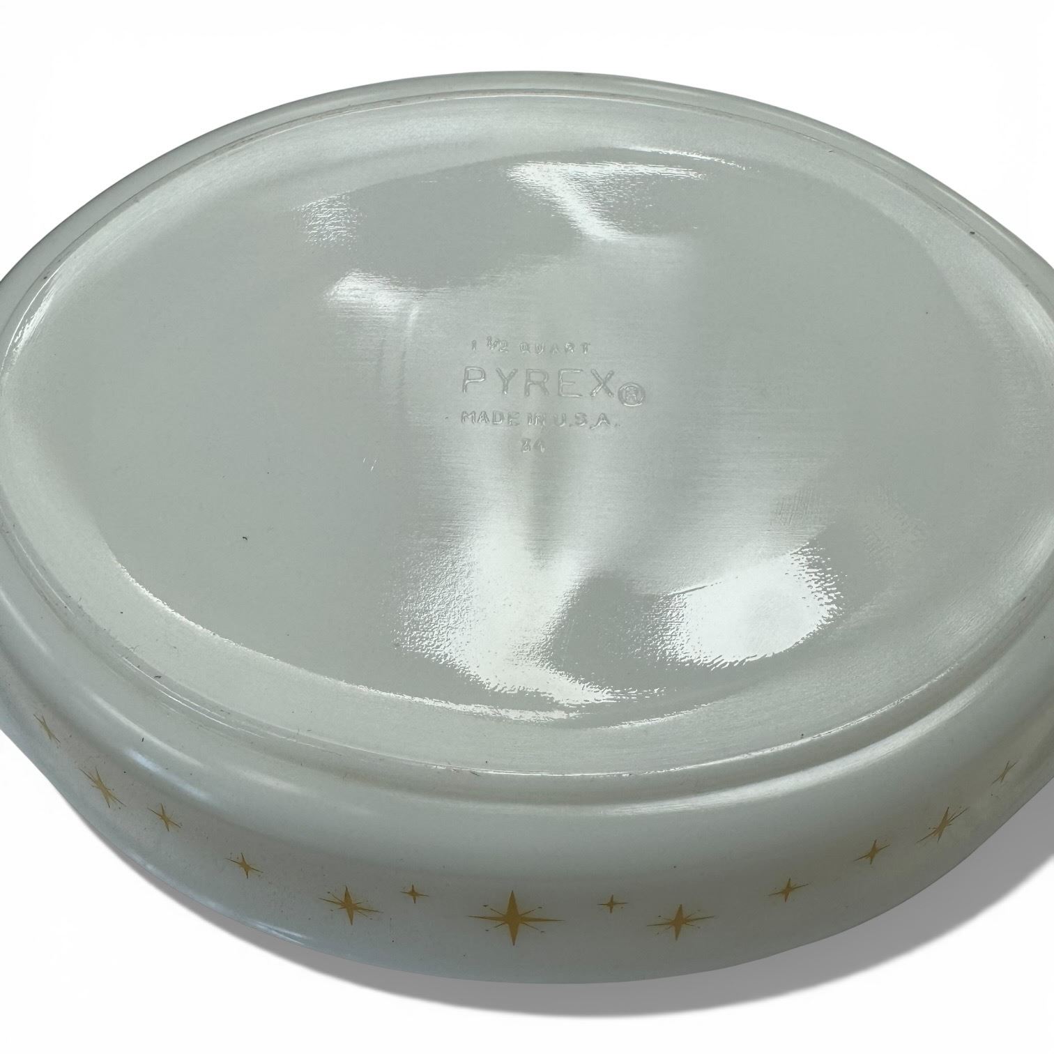 Pyrex promotional collection includes the 1958 'Mod Kitchen' 043 dish, 0503 format with lid, Early American pattern divided dish, and Constellation divided dish. Mod Kitchen features bright kitchen-inspired motifs. Early American and Constellation patterns are on divided dishes. Item is as pictured.