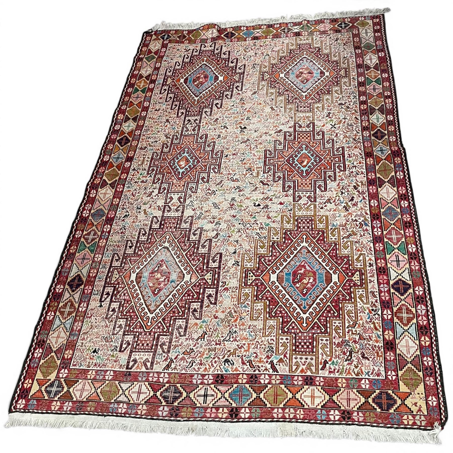 Qum Persian Silk Rug, Handmade Featuring a Geometric Medallion Pattern 77x50"