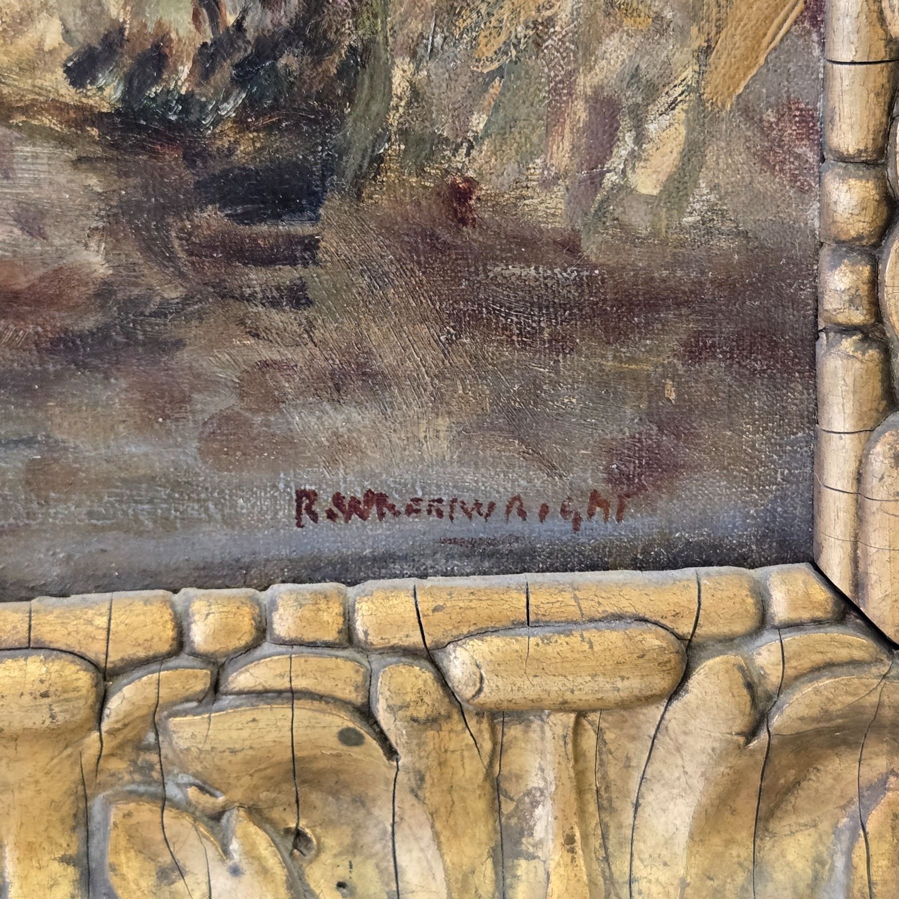 Although Wheelwright is recorded as a painter of historical and classical subjects, his major passion seems to be that of the heavy working horse. In the period 1900-1920 he produced some outstanding large finely executed canvases of the heavy horse at work.