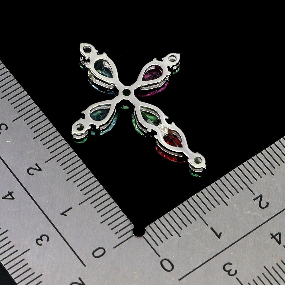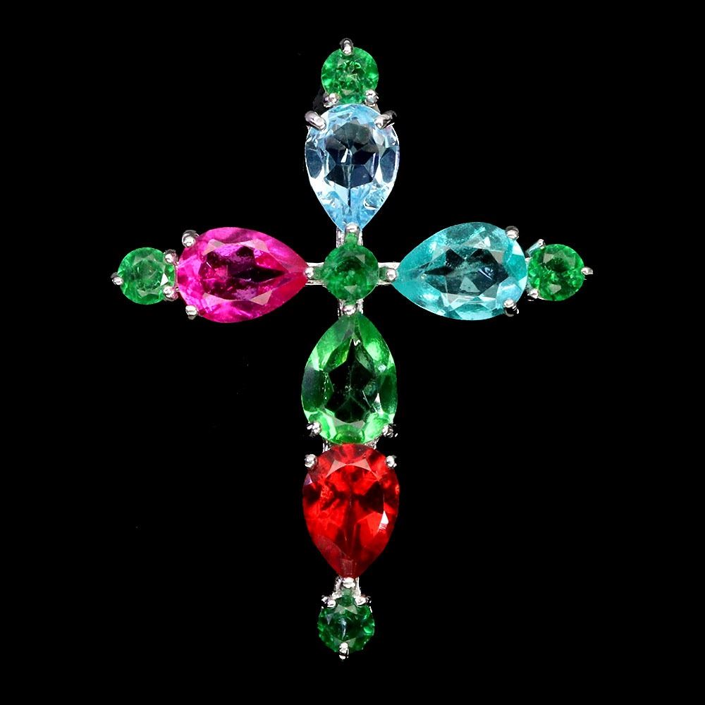 RED, GREEN, PARAIBA BLUE AND SKY BLUE TOPAZ CROSS SHAPPED PENDANT IN BLACK RHODIUM PLATED OVER 925 STERLING SILVER - APPRAISED REPLACEMENT VALUE CAD 670