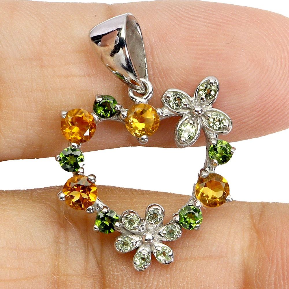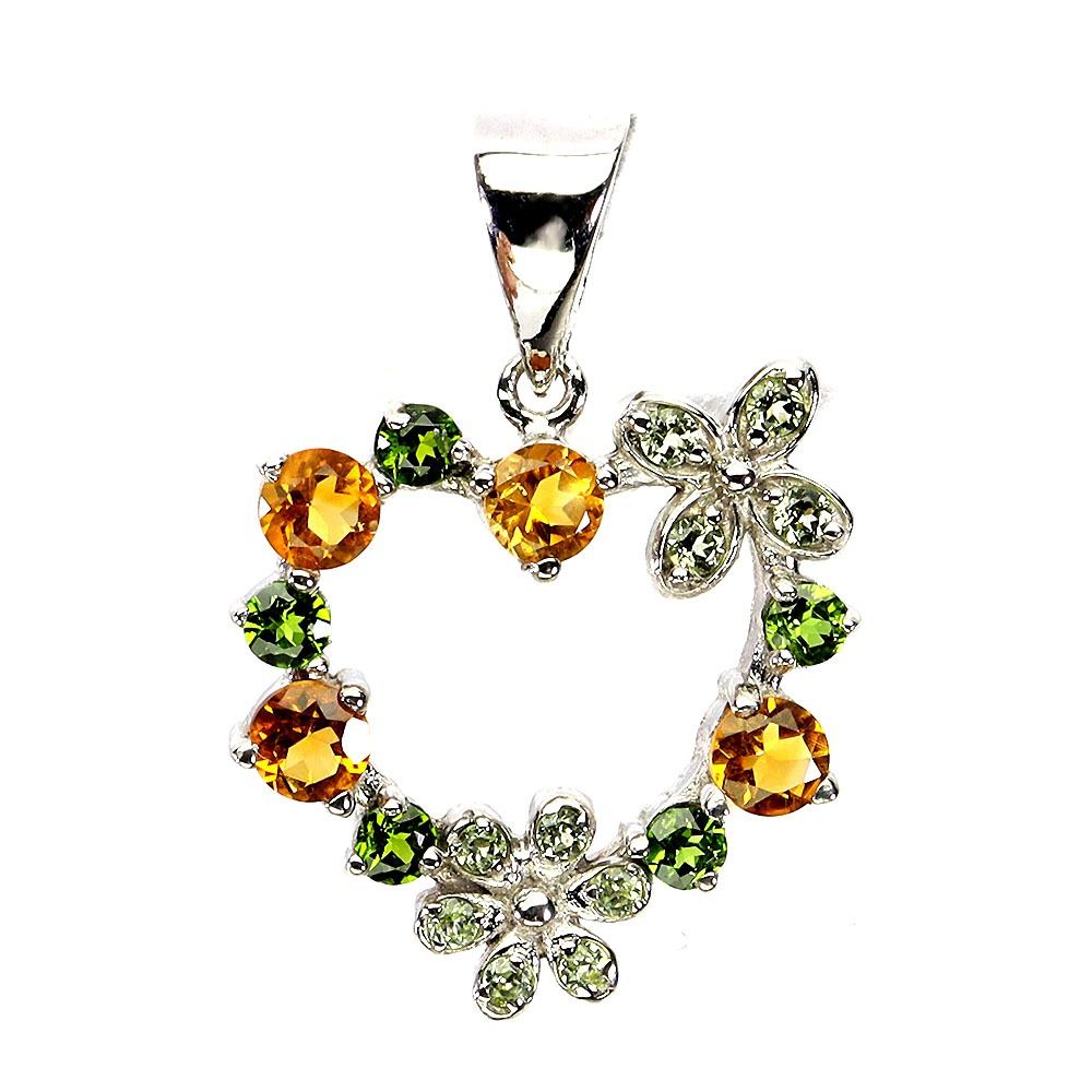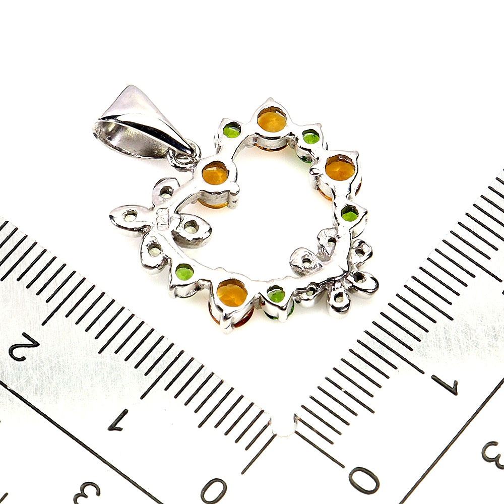 ROUND CITRINE AND CHROME DIOPSIDE PENDANT IN 14K WHITE PLATED GOLD OVER 925 STERLING SILVER - APPRAISED REPLACEMENT VALUE CAD 300