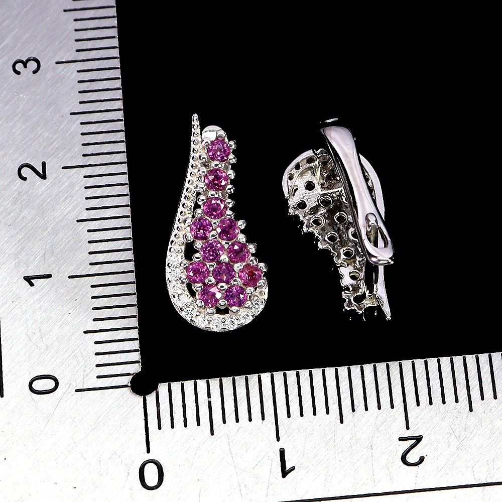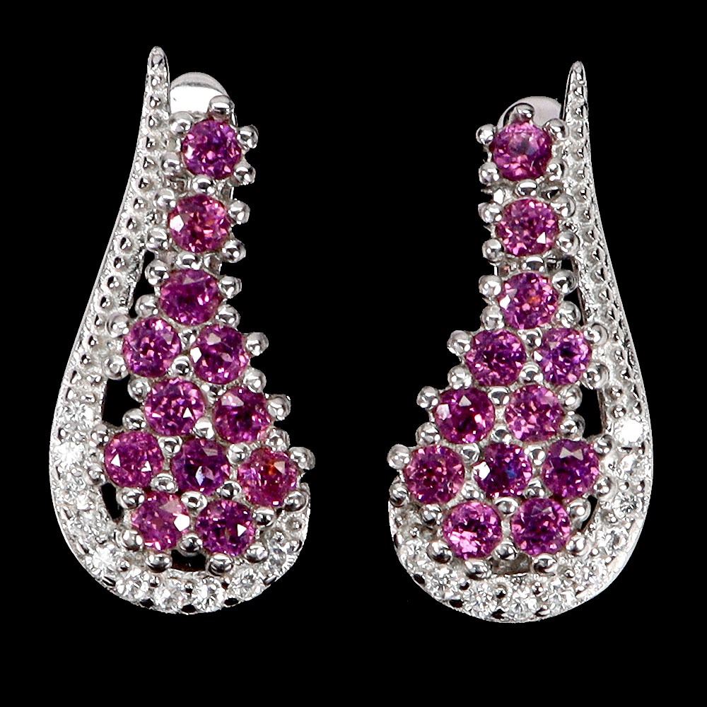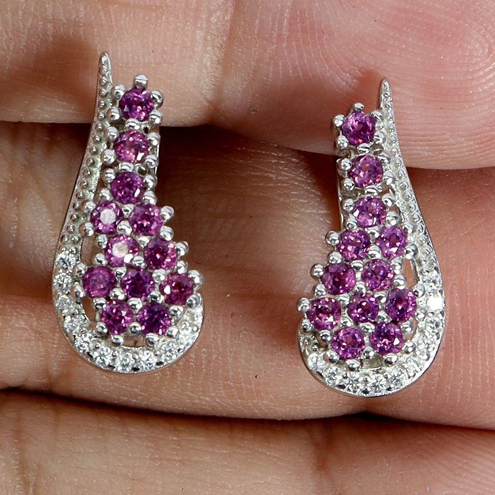 ROUND CUT RHODOLIDE GARNET EARRINGS IN 14K WHITE PLATED GOLD OVER 925 STERLING SILVER - APPRAISED REPLACEMENT VALUE CAD 770