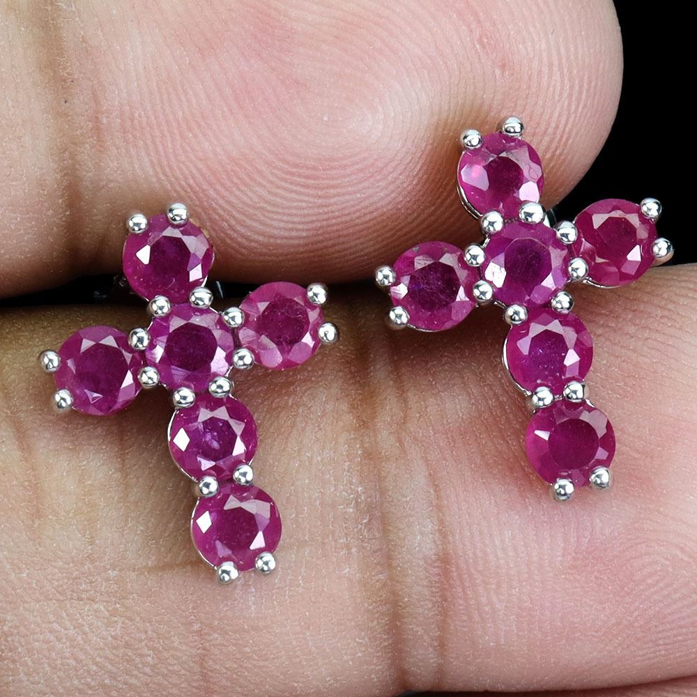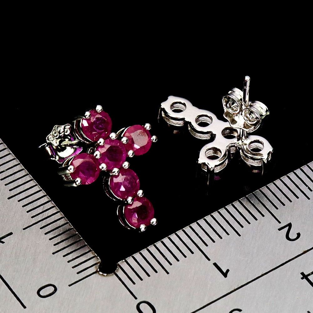 ROUND RUBY CROSS SHAPPED EARRINGS IN 14K WHITE GOLD PLATED OVER 925 STERLING SILVER - APPRAISED REPLACEMENT VALUE CAD 990