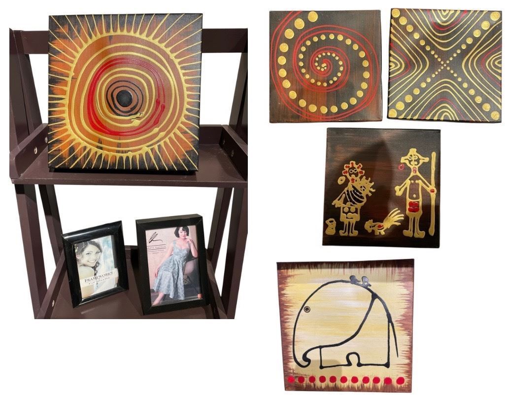 RS - Group of 5 Abstract Art Canvases with Two Black Photo Frames