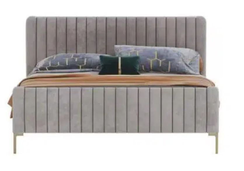 RS NEW Las Vegas King - Grey Platform Bed Frame - Retails: $899 - modern design platform bed frame in velvet or regular fabric with 51high headboard.