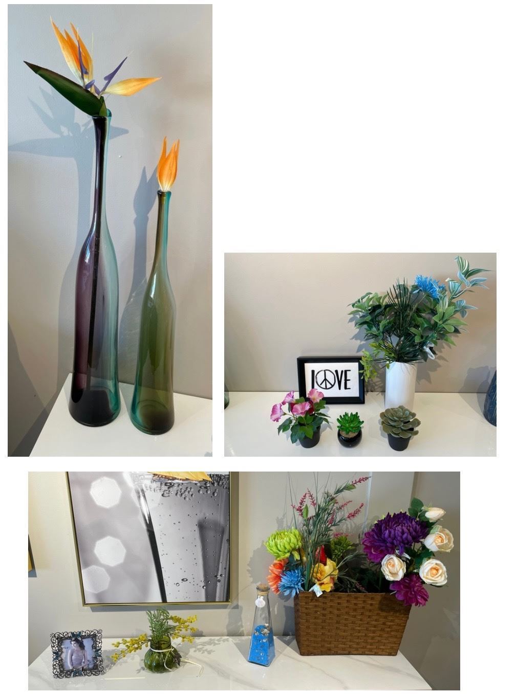 RS - Set of 2 Tall Glasss Vase and Group of Decorative Contents