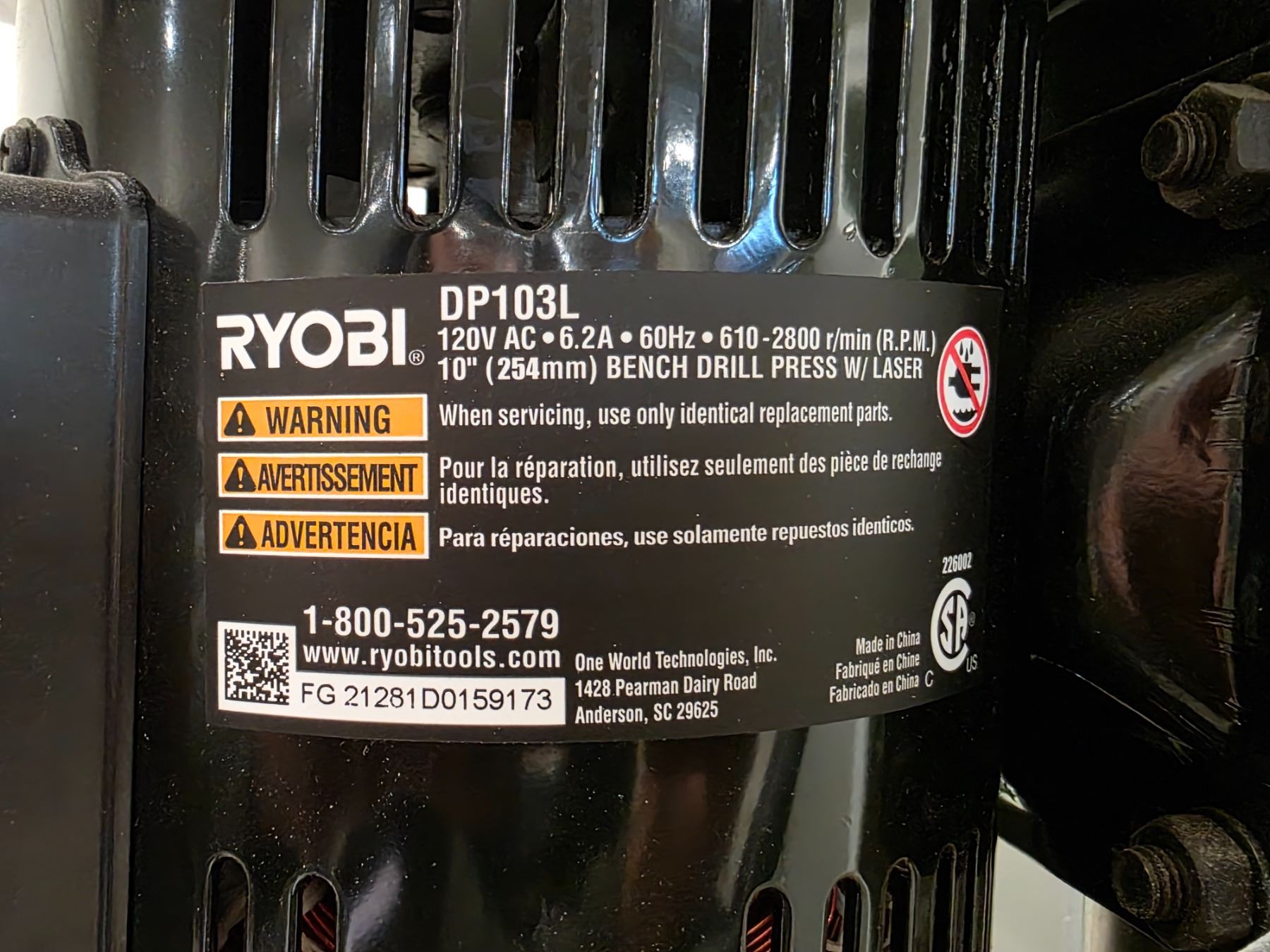 RYOBI Bench Drill Press with Laser (Model: DP103L) 10"