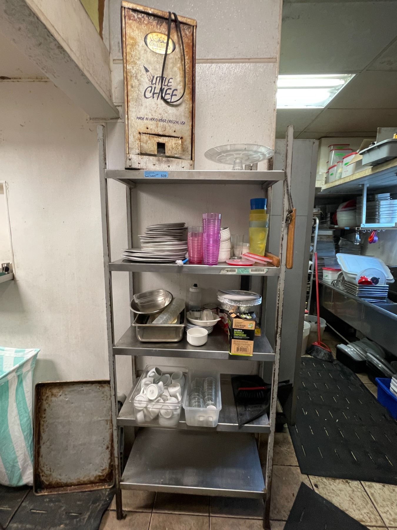 Rack & Contents including "Little Chief" smoker, glasses, trays, etc.