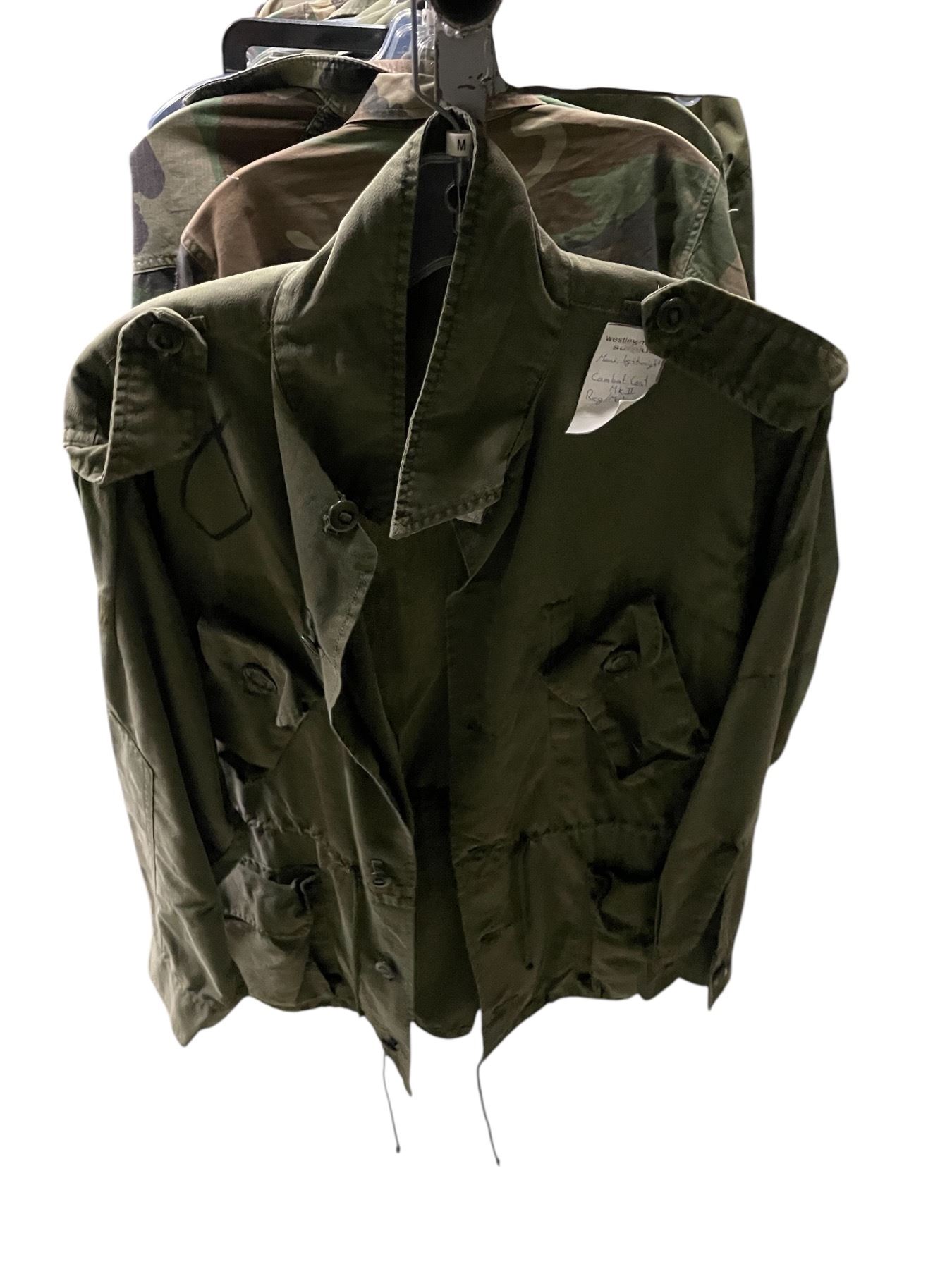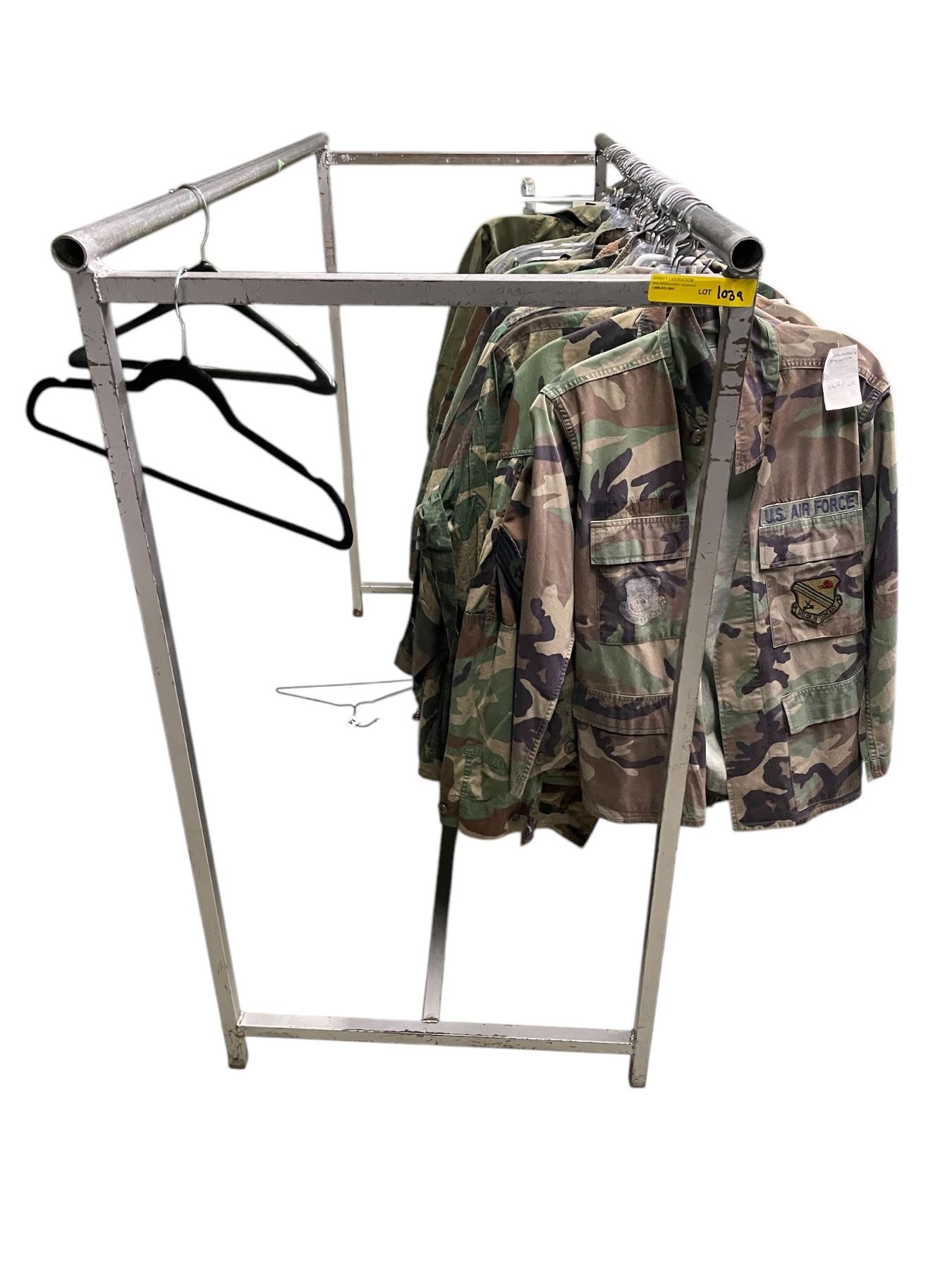 Rack full of millitary coats & assorted clothing (approx 40 pcs) Rack included