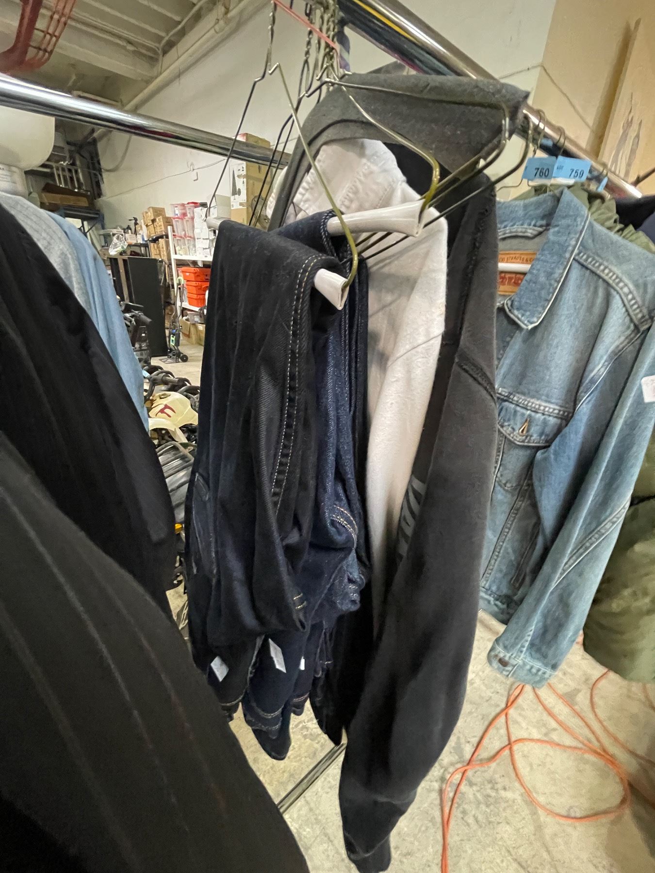 Rack of Clothes - includes 12 assorted pcs, includes Levi Strauss Jean/ ZARA Leather Jacket/Essential "Fear of God" & More (Rack is not included)
