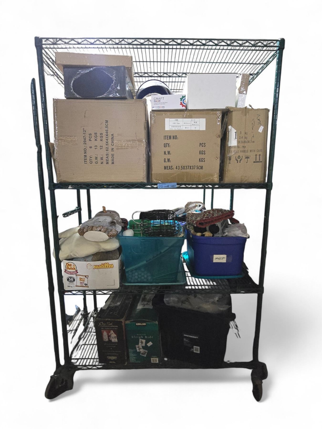 Rack of Misc - Christmas Decor, Bingo Cards, Craft Maker Hot Glue, Stuffies, Etc.
