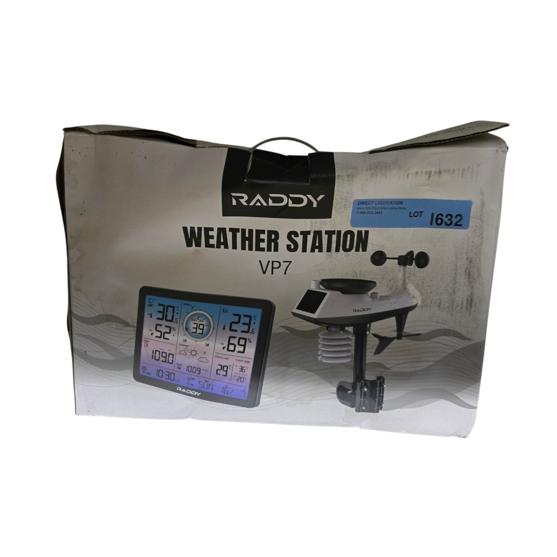 Raddy VP7 Weather Station Indoor Outdoor Thermometer Wireless Color Display Atomic Clock with Rain Gauge Retail $103 (Box Has Damage)