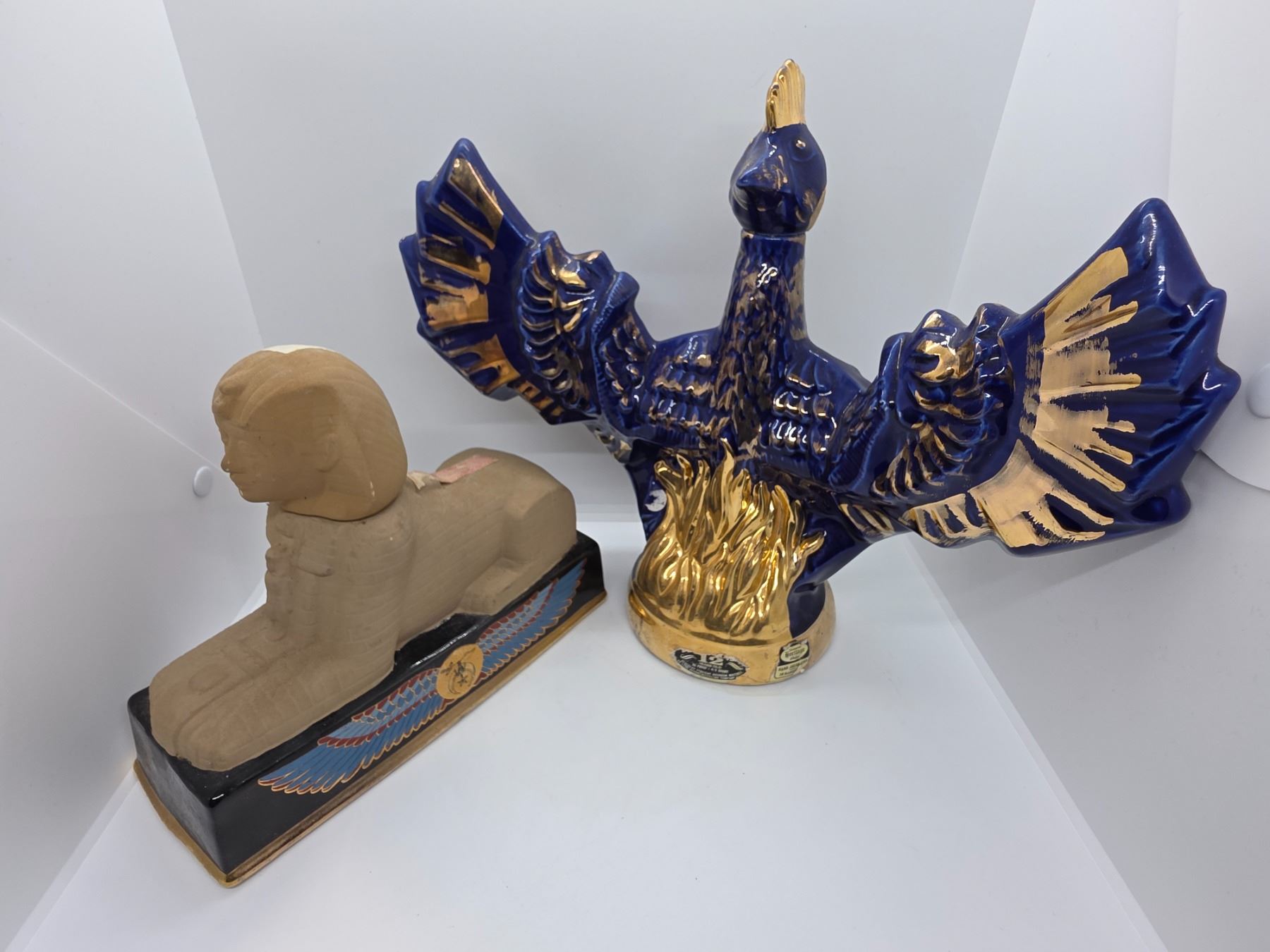 Rare 1980s Ezra Brooks Shriners Sphinx & 1971 Phoenix 750ml Decanters - Both are empty