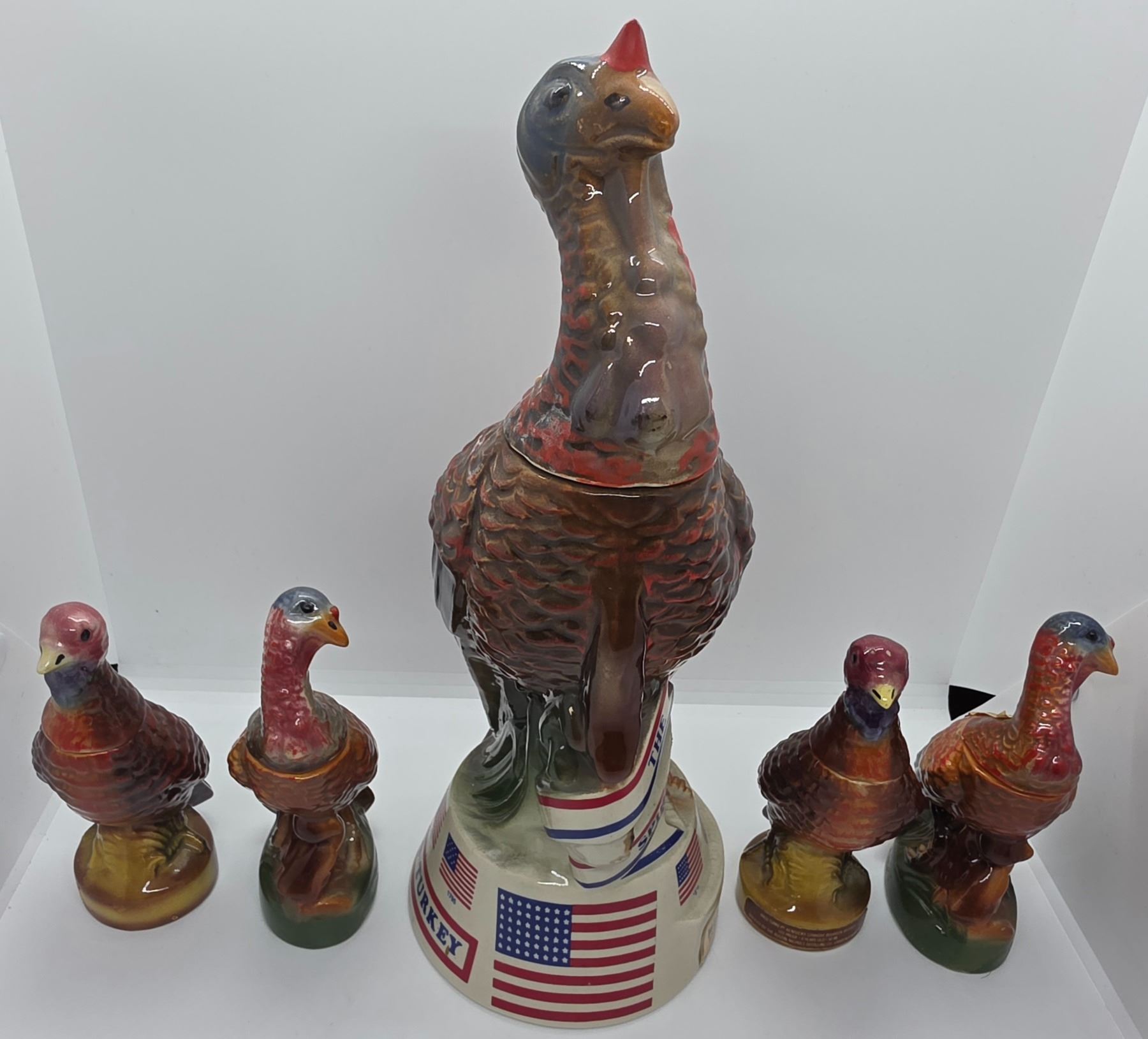 Rare Set of Vintage Wild Turkey Full Size & 4 Mini Decanters - Mini Decanters are #1-4 in the series