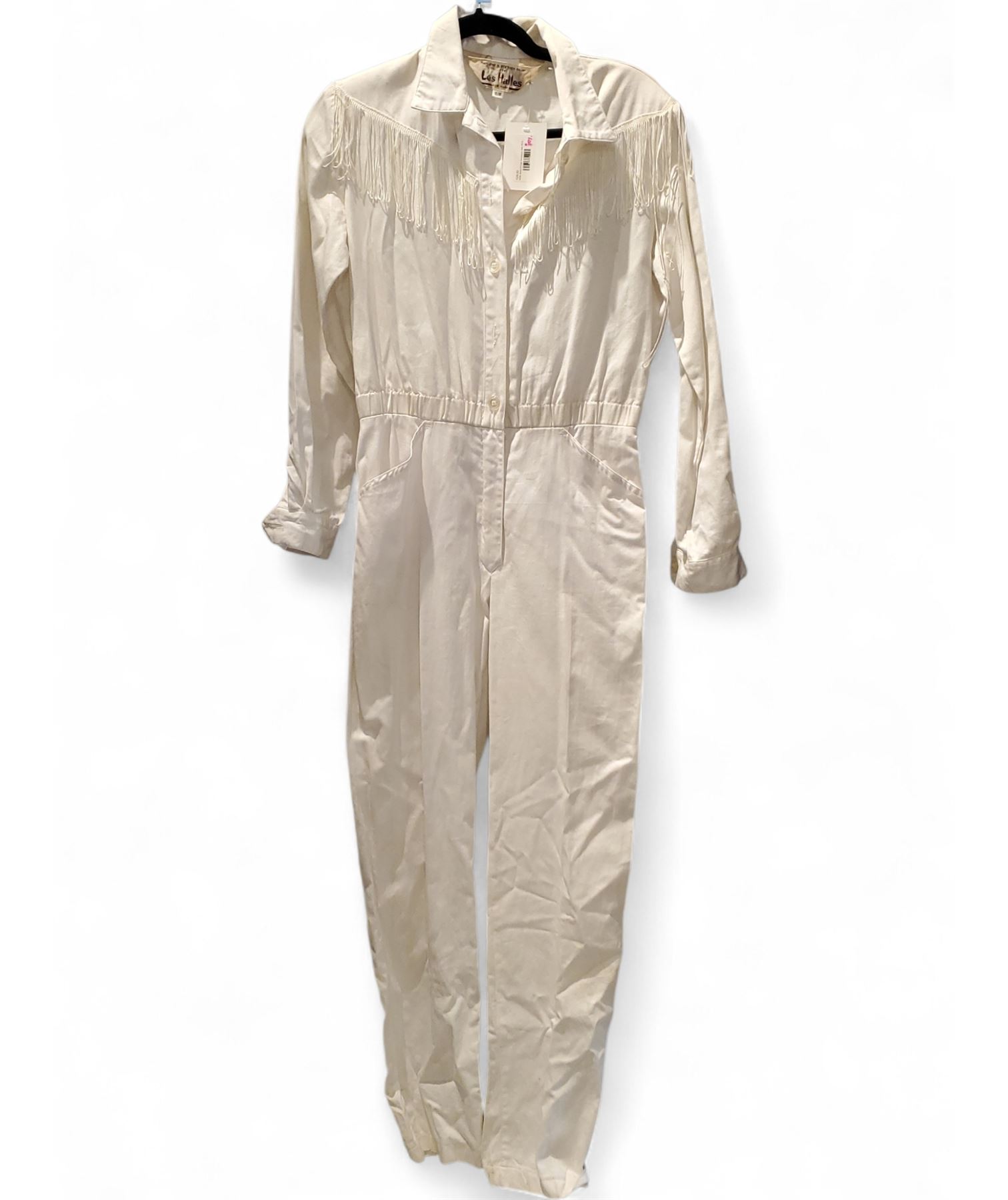 Rare Vintage M. & S. Baum White Fringe Jumpsuit, Size XS/S - R.V. $128.99