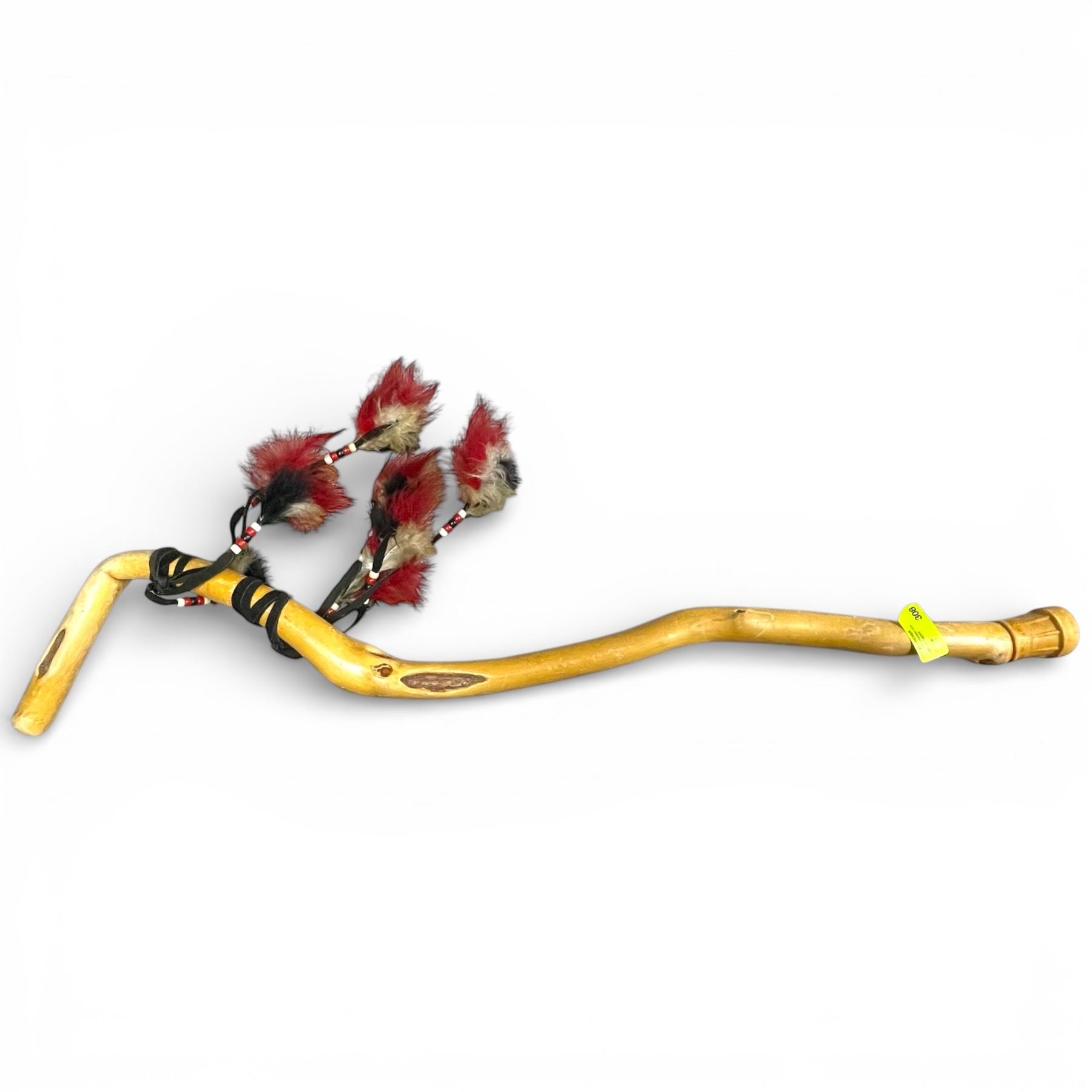 Recovered Wood Cane with Feather Detail (38" long with rubber capped end)