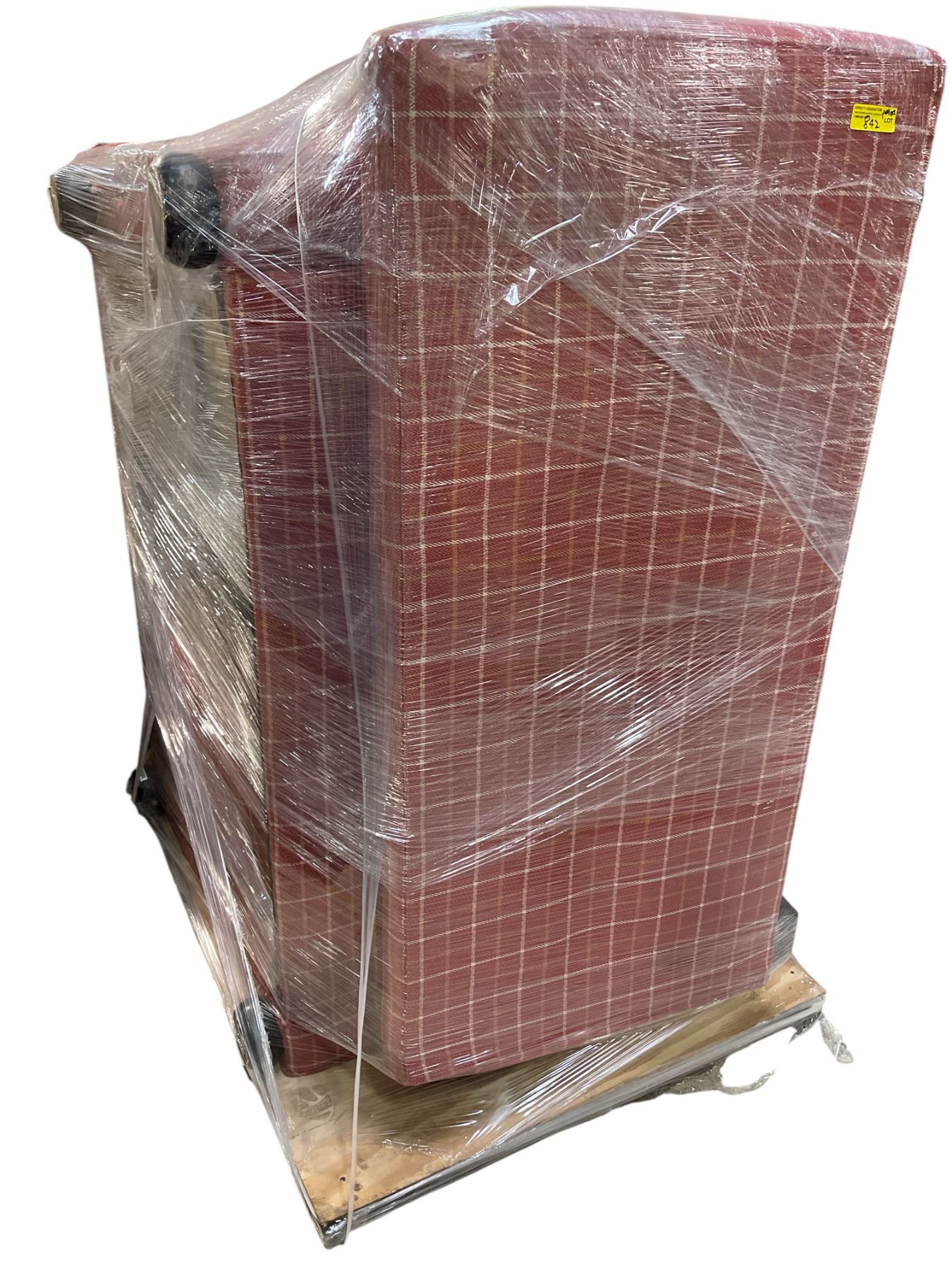 Red Plaid Upholstered Sofa, Approx. H28" x W54"