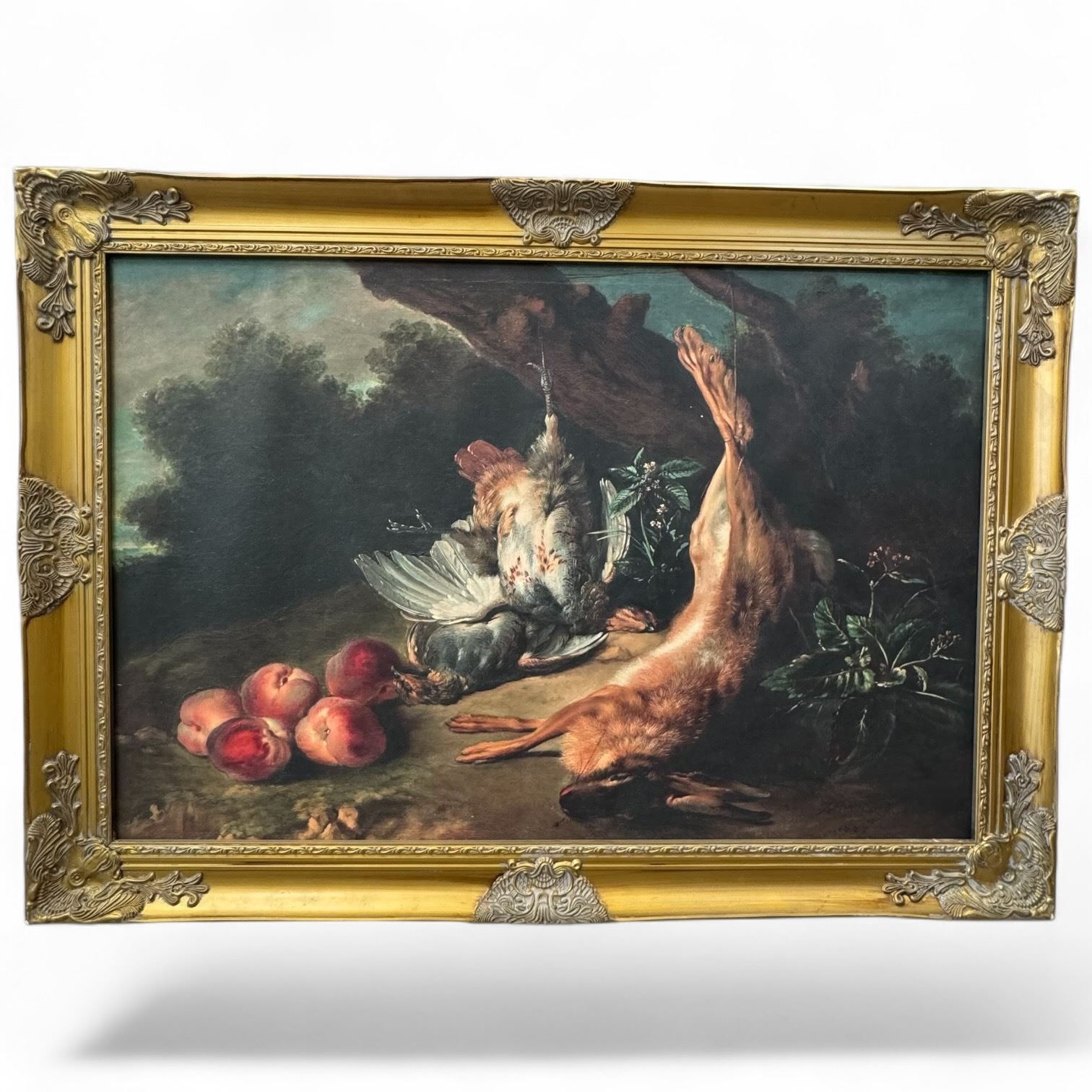 Reproduction of the 1727 Oil Painting "Still Life with Dead Game and Peaches" by Jean-Baptiste Oudry