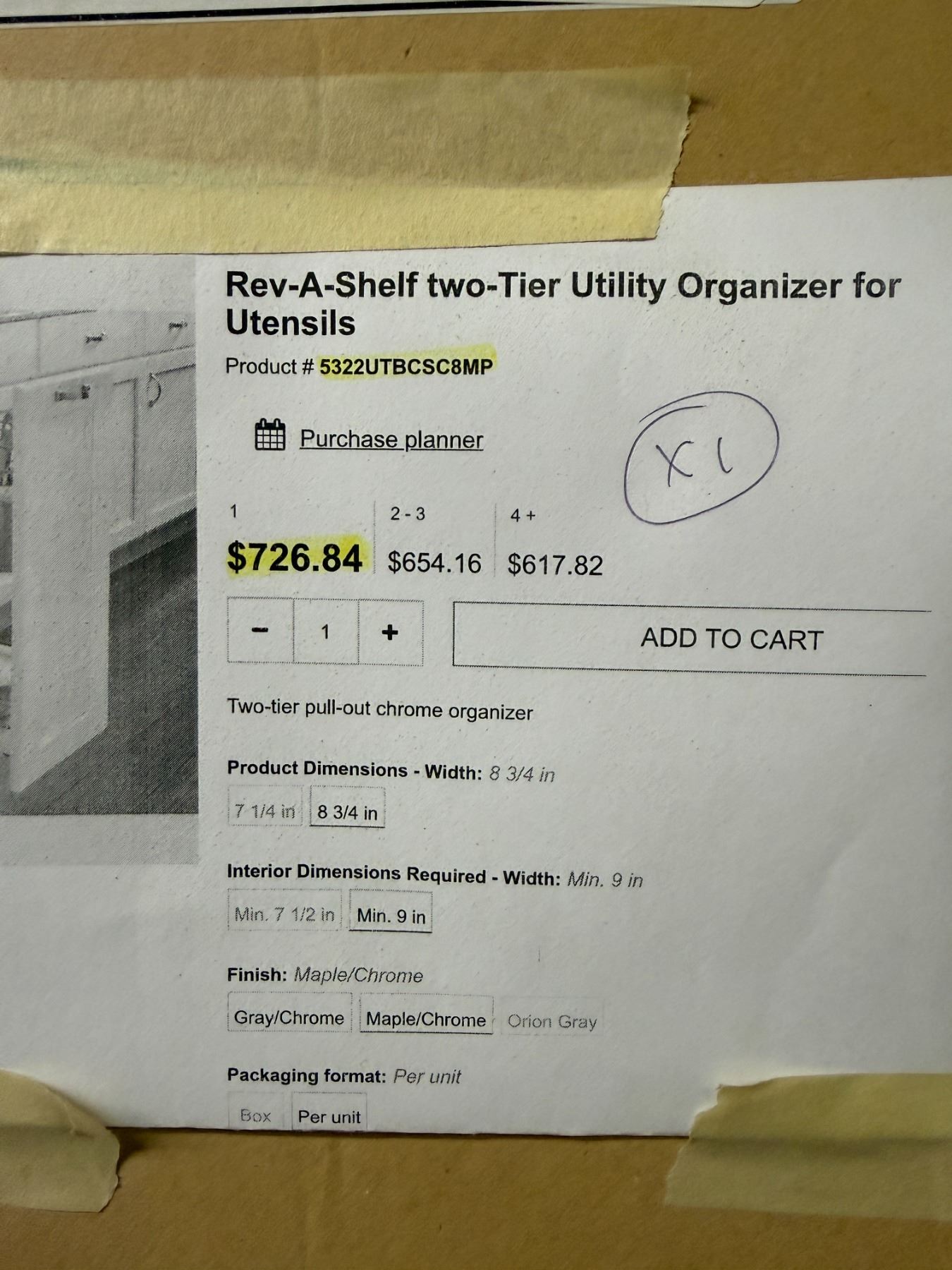 Rev-A-Shelf 2 tier utility organizer - Wholesale Value: $725
