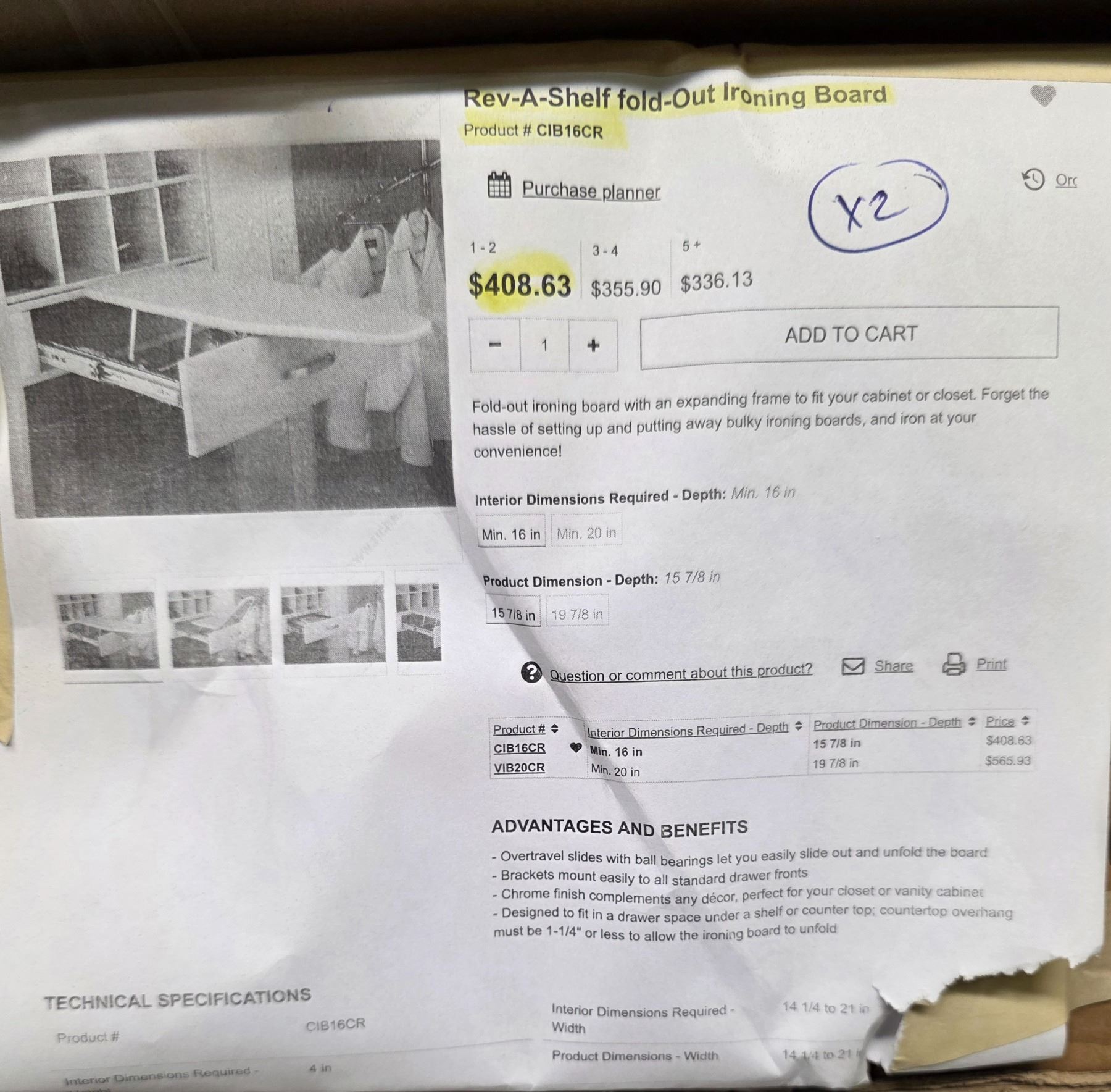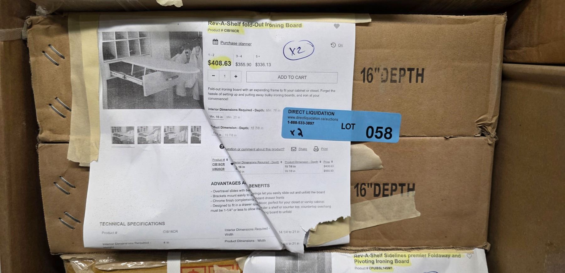Rev-A-Shelf fold out ironing board (x2) - Wholesale Value: $800