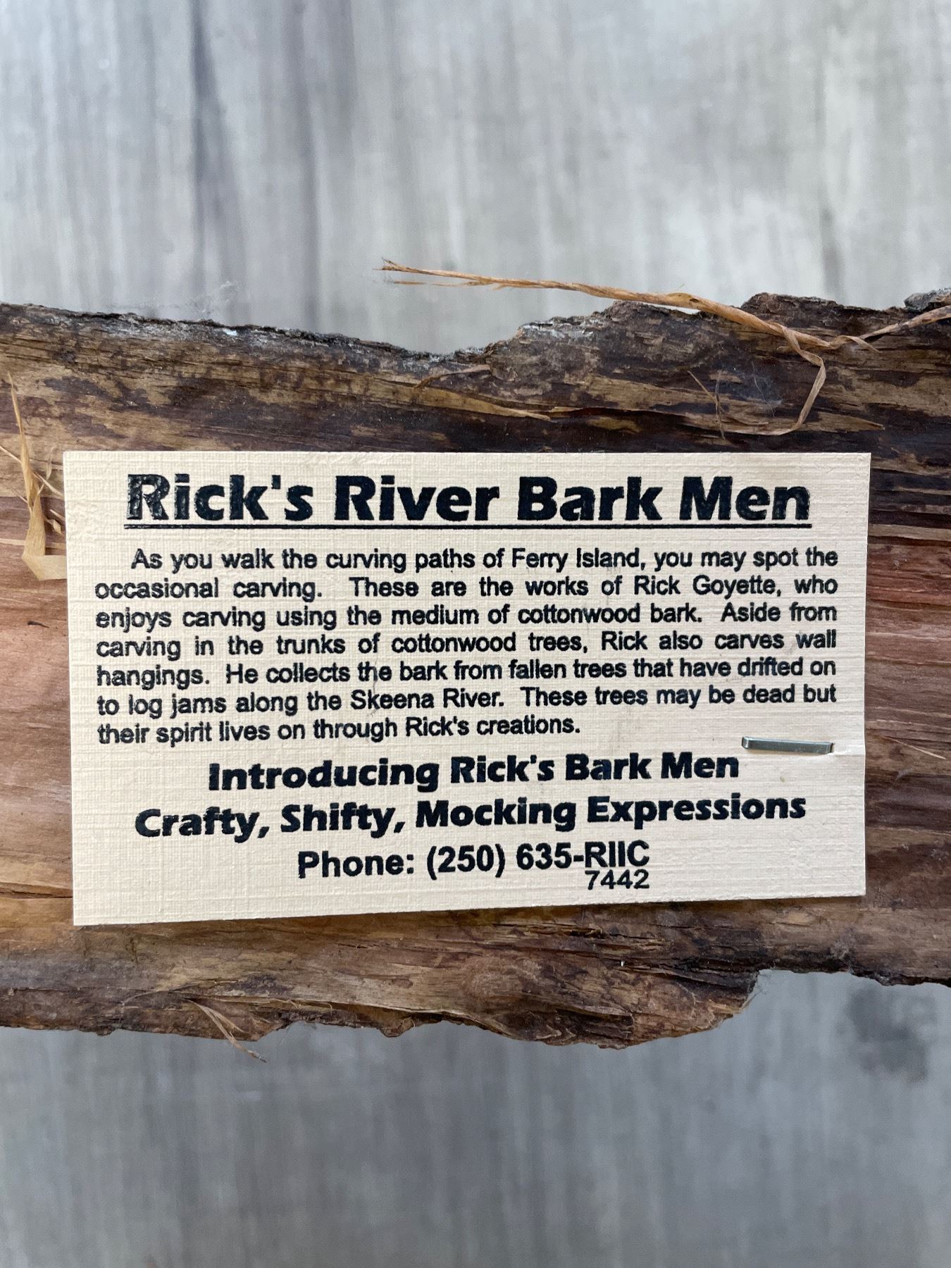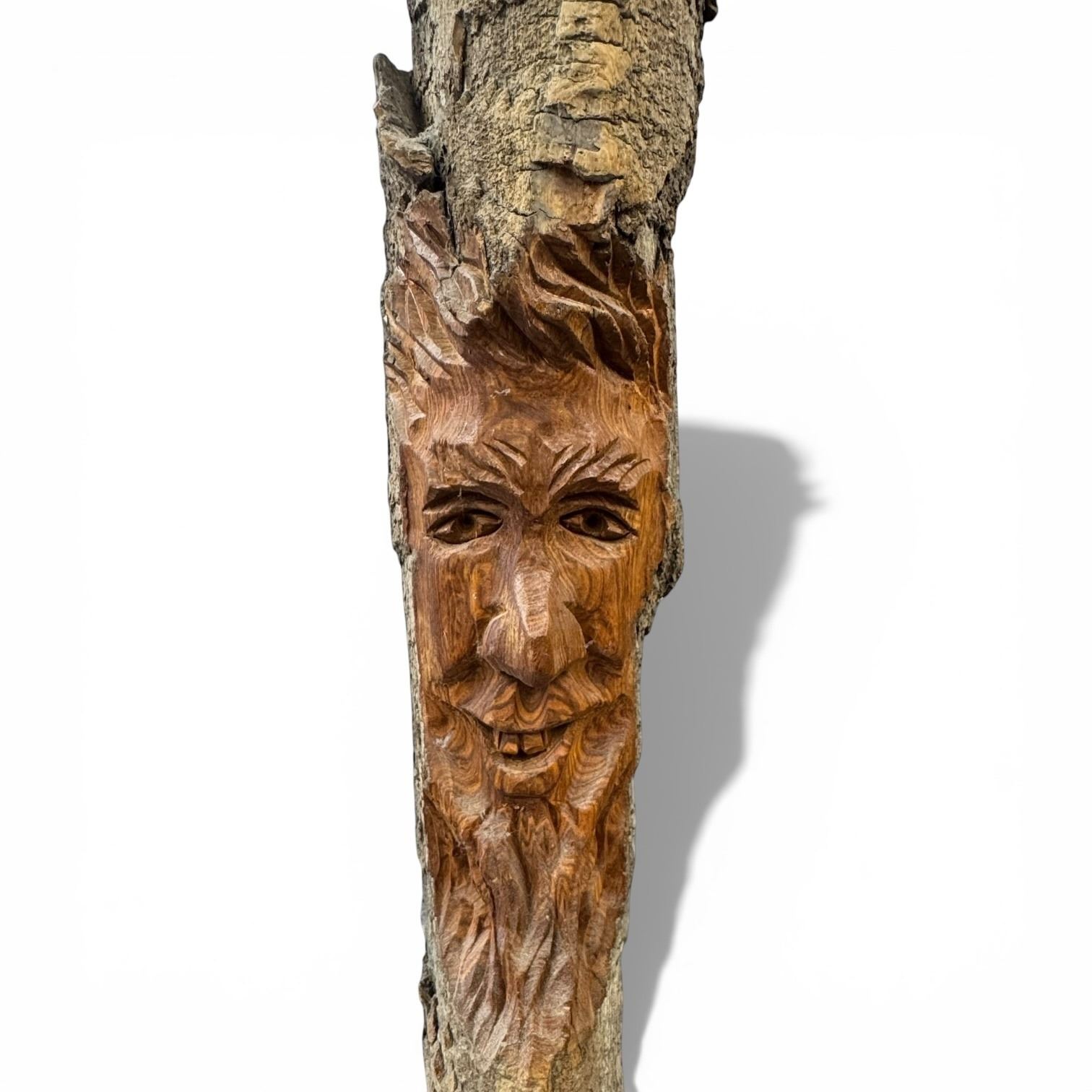 Rick Goyette Carved Wood Bark Man Wall Hanging - Initialed R. G. on the Back (3" x 3" x 24" tall)