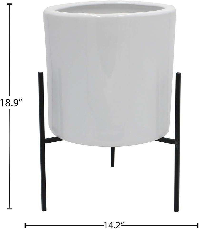 Rivet Mid-Century Ceramic Planter with Iron Stand, 18.9 H, Solid White - B0842H2F7C - Retail price U